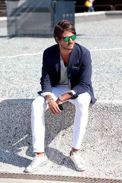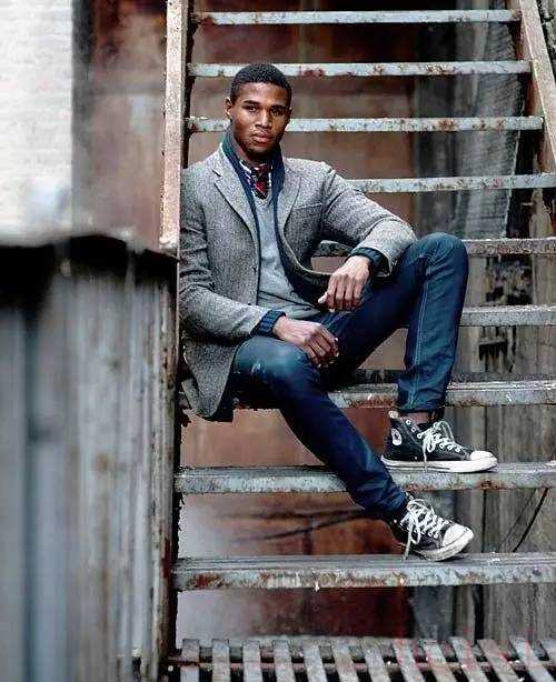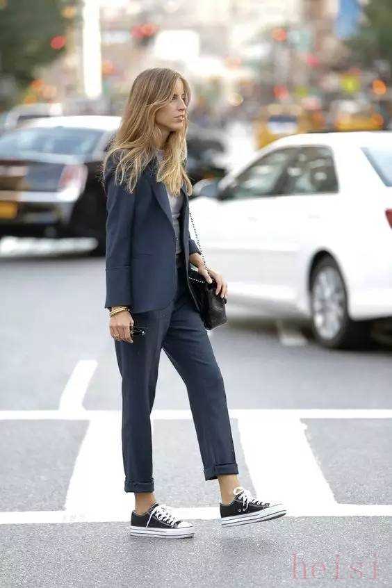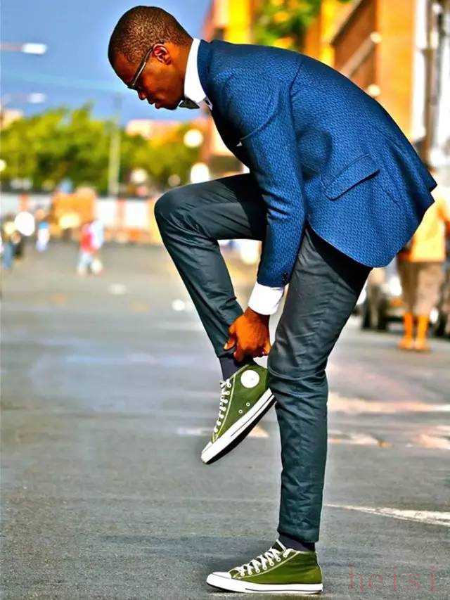 不信,那来看看,首先说西装,西装的标配自然是漆皮牛津鞋,不过当Converse如此火爆,又怎么能挡得住两者相配,通常,可以用休闲的棉质西装,消去西装的正式性,再用随性的帆布鞋相配,就非常得体。
