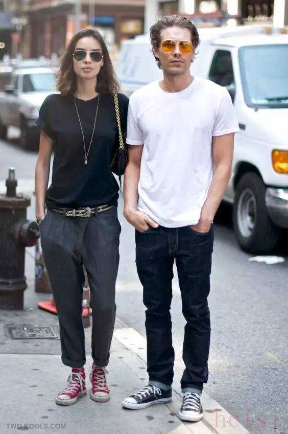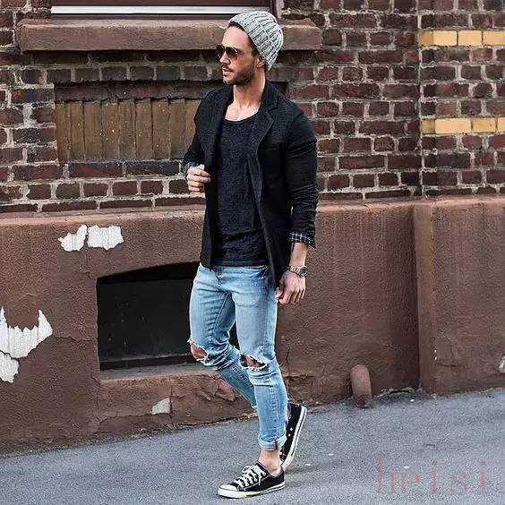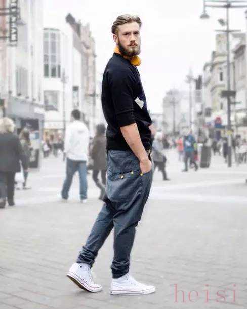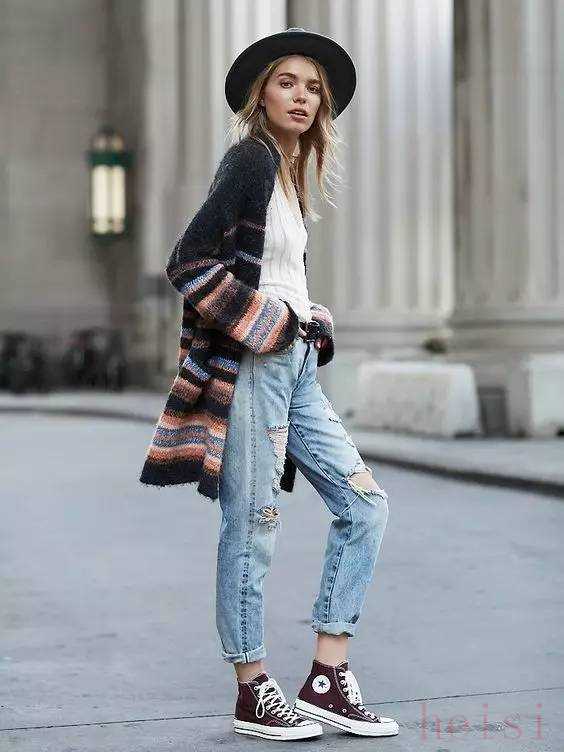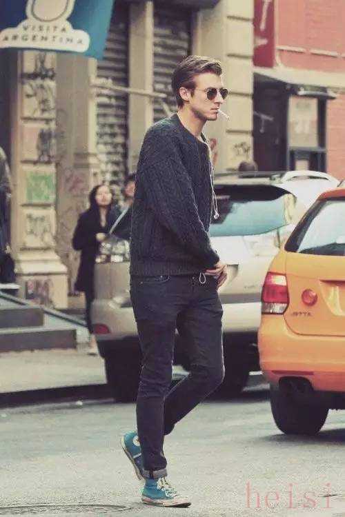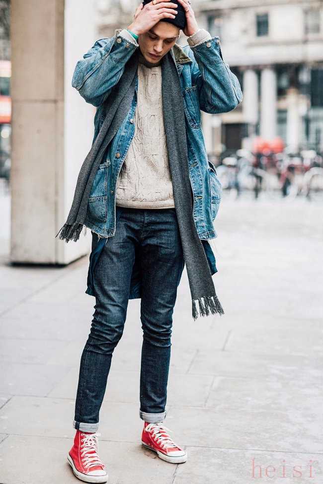 牛仔裤也是白搭的产品,百搭加百搭,结果也就很明确了,上半身可以根据天气的变化选择不同的搭配。一条修身的牛仔裤,不管是高帮还是低帮匡威鞋,都会做到完美衔接。
