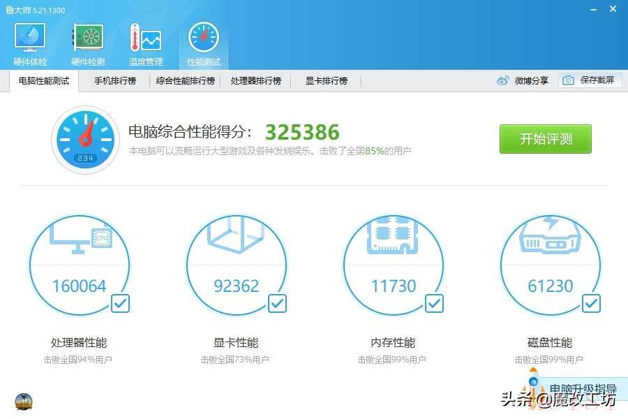 老版本的鲁大师,处理器跑分16万,对比之前的10代销量王10400提升了4万分,如果之前说12600K多了小核心算是作弊,那么这次的12400F已经去掉了小核则是纯纯的秒杀了。