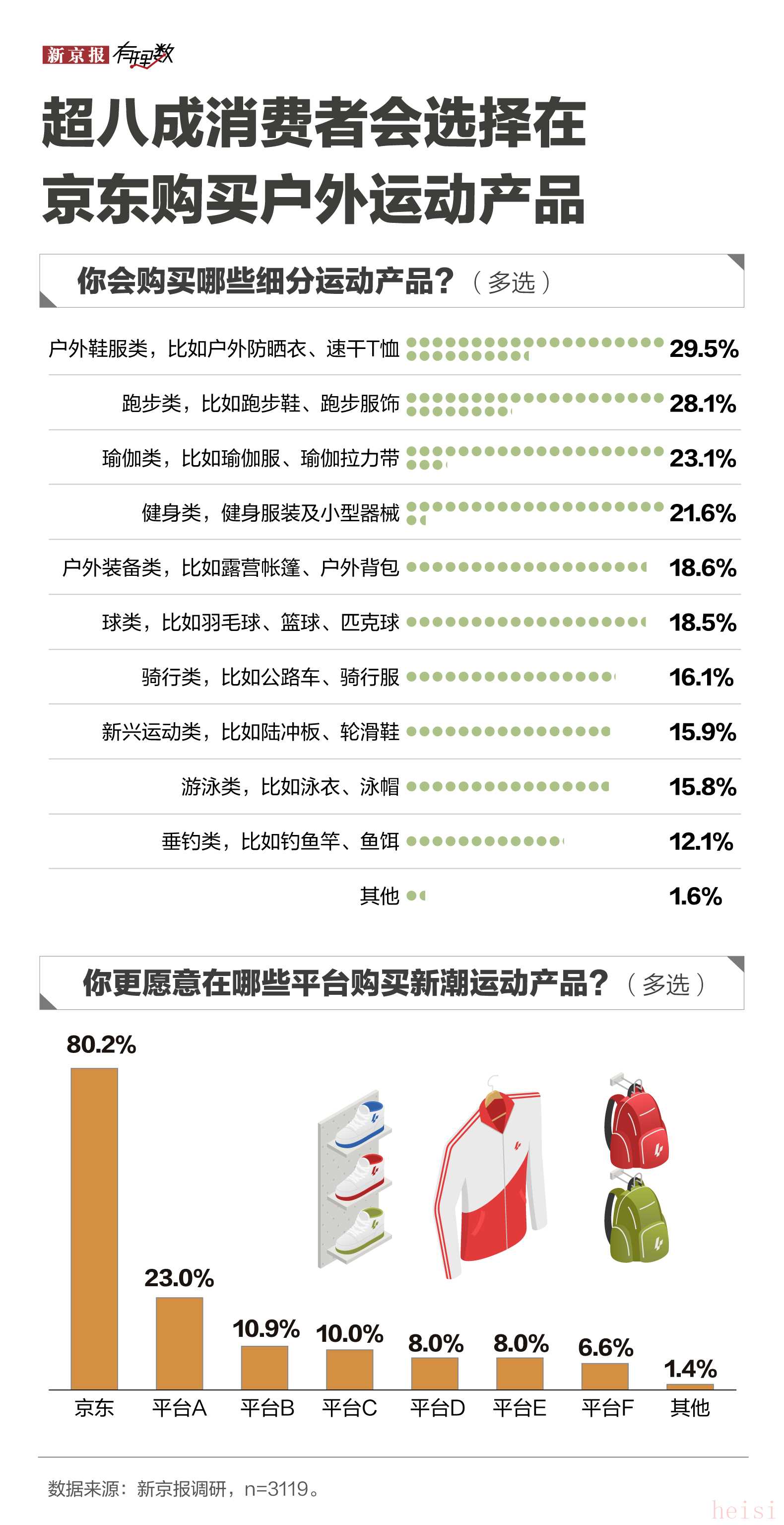 在购买平台的选择上,超八成(80.2%)消费者更愿意在京东购买垂钓、瑜伽、高尔夫等新潮运动产品。平台专业性更强,比如主播更专业、推荐的产品品质更好,这一点得到38.9%消费者的认可,体现了消费者对专业推荐和优质产品的渴望。