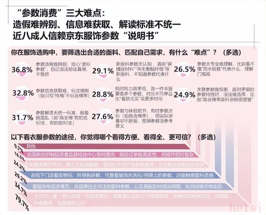 从前面的调研结果不难发现,在服饰消费上,“懂成分、看参数、选面料”已经融入相当部分消费者的认知和消费决策之中,这是消费者主动跳出营销干扰、回归商品本质的理性选择。不过,从看参数、选面料到买到“货真价实”的商品之间,仍需要“靠谱”平台来完成整个闭环。调研显示,“参数消费”痛点多,参数造假难辨认(36.8%)、参数信息难获取(32.8%),参数解读无统一标准(31.7%),是消费者要通过参数选购合适面料衣服的三大“难点”。