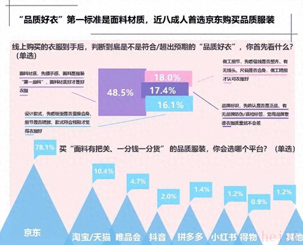 "品质服饰首选:" 根据相关调研或市场表现,近八成(80%)的消费者在购买品质服饰时,首选京东平台。