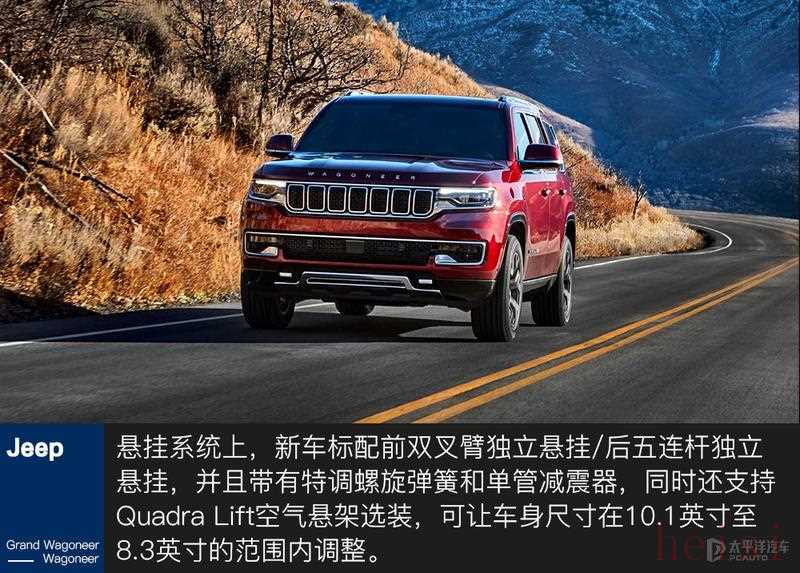 而Grand Wagoneer则搭载6.4L V8自然吸气发动机,最大功率478PS,最大扭矩617N·m,传动系统匹配8速自动变速器。
