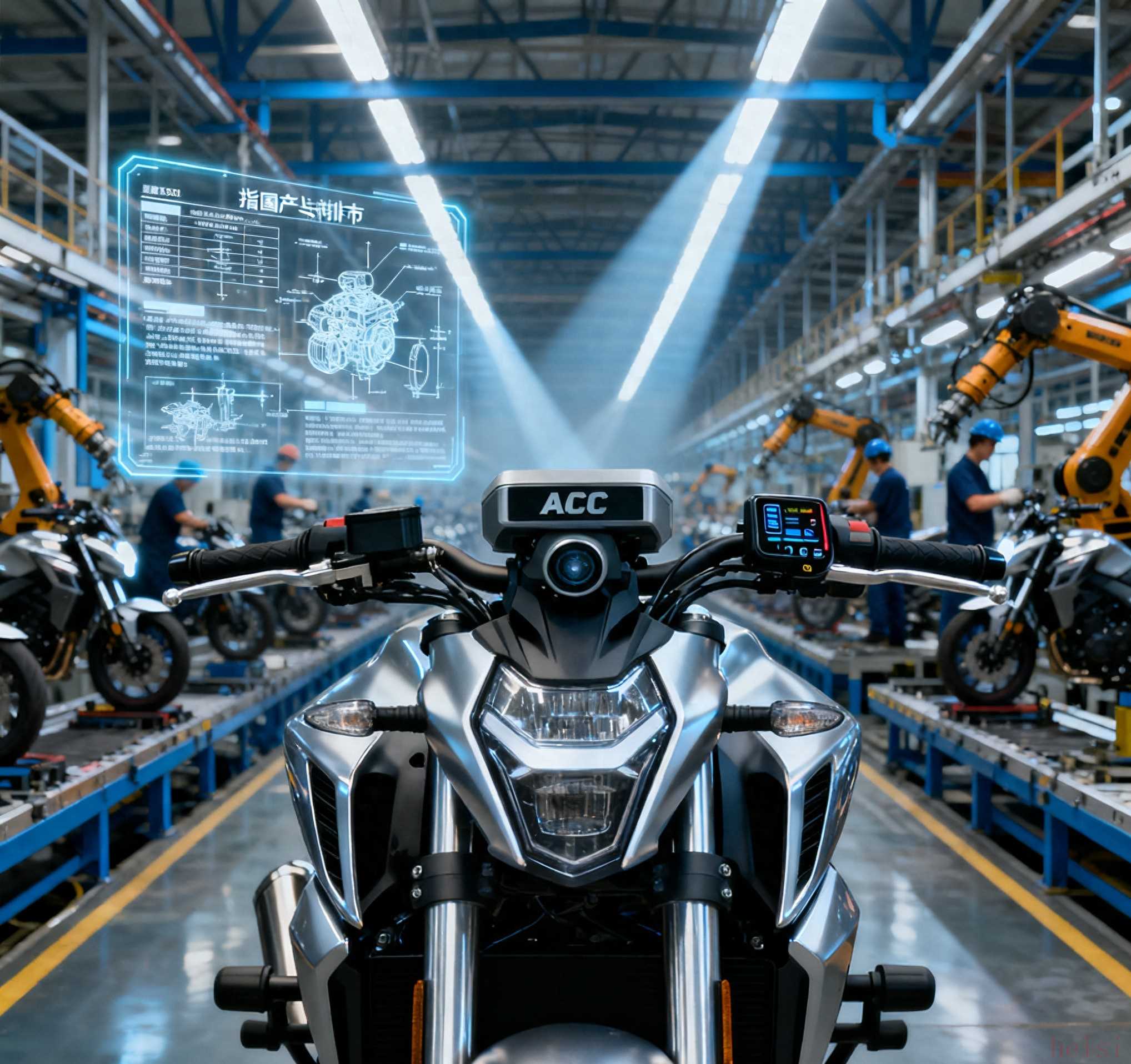 3. "ACC雷达 (ACC Radar):" 这通常指"自适应巡航控制系统 (Adaptive Cruise Control)",配备雷达传感器。这是高端摩托车越来越常见的配置,能实现更智能的跟车和速度控制,提升长途骑行舒适性和安全性。
