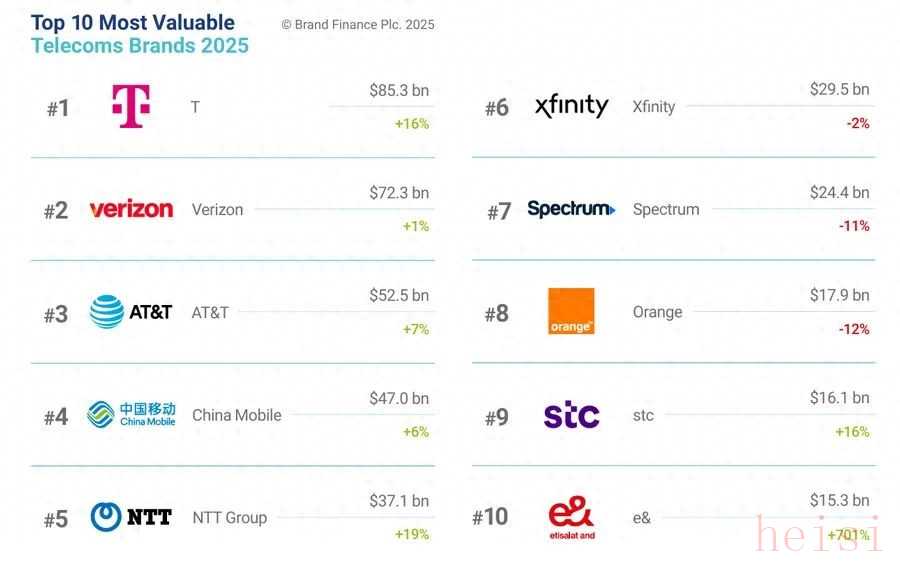 他们极有可能出现在2025年发布的全球电信品牌价值50强榜单中,并且排名通常会比较靠前。