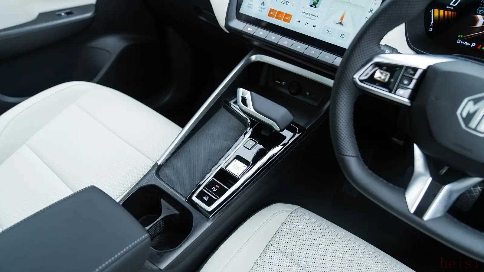 内饰方面,全新一代MG ZS仪表与中控娱乐屏的尺寸进一步增加,换装与全新MG 3相同的双辐造型方向盘,同时中控屏上方的两个空调出风口采用不规则梯形设计,电子挡把造型相比现款更有科技属性。