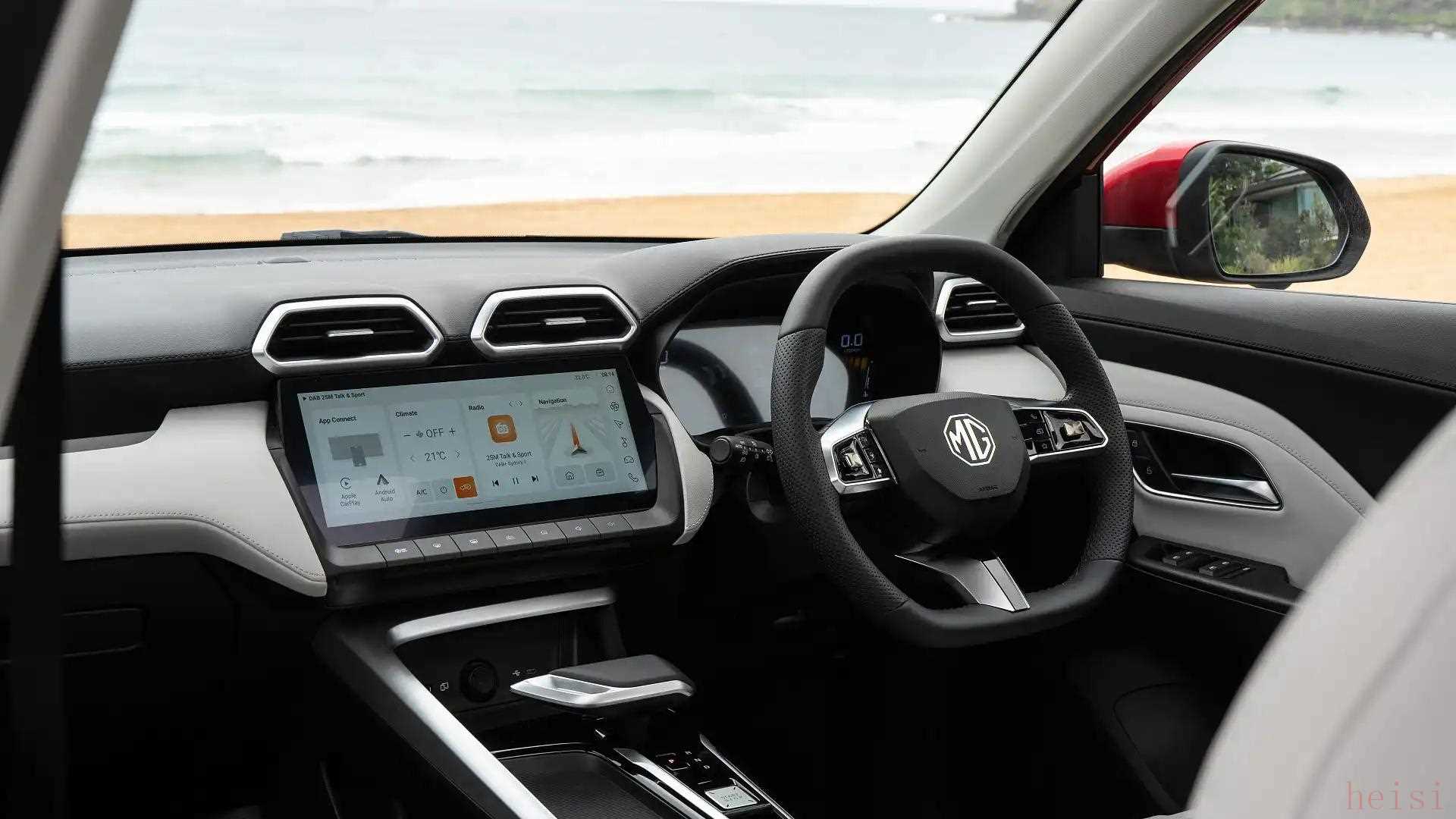 全新一代MG ZS汽油版共推出3款配置车型,入门Excite版售价为26990澳元(约合人民币12.3万元),配备16英寸轮辋,支持Apple CarPlay/Android Auto互联、织物座椅、手动座椅调节等配置。同时,该车还会根据配置不同,提供17英寸或18英寸轮辋、皮质座椅、前排座椅加热、360度全景影像等配置。