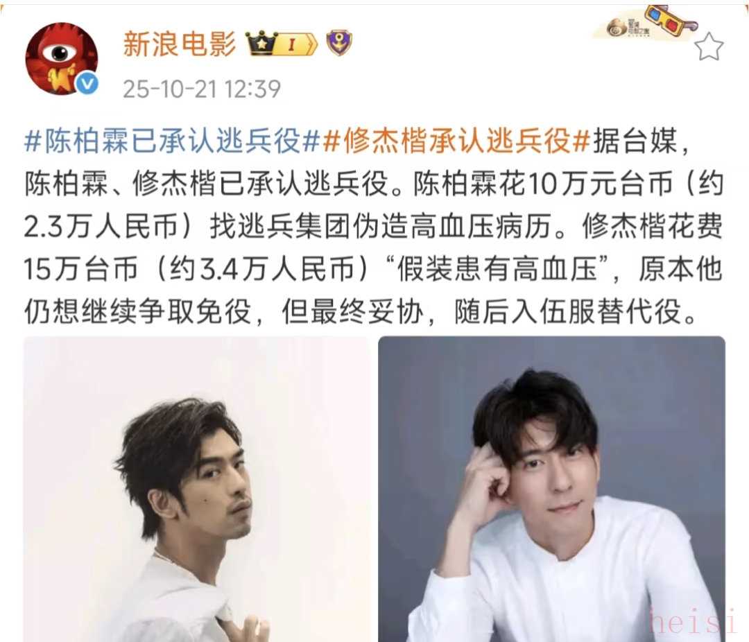 法律追责已至:依台湾地区《妨害兵役治罪条例》,伪造文书逃役最高判5年,追诉期20年。陈柏霖交50万台币保释,但Tissot等品牌连夜切割,粉丝崩溃:"军旅剧别演了怕笑场"。