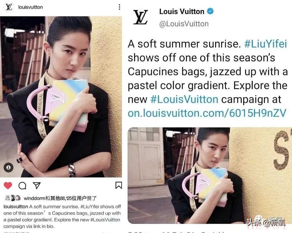 不仅如此,LV品牌在ins和推特上发的刘亦菲宣传文也没有加上相关代言人title