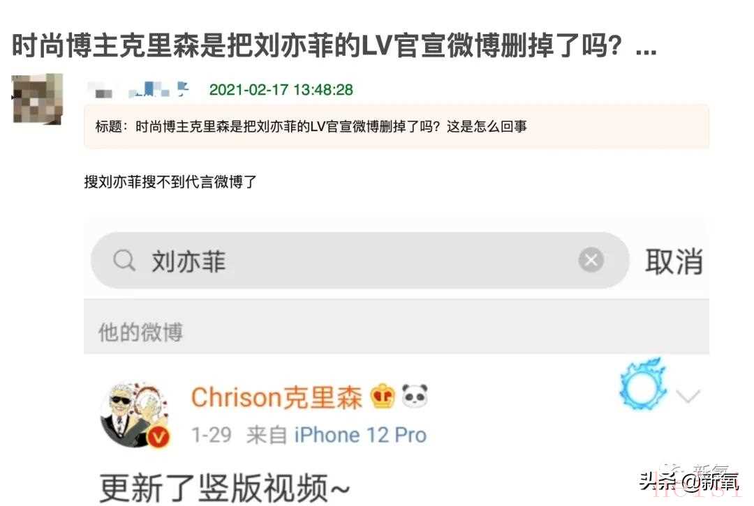 国内时尚博主克里斯还把刘亦菲的lv官宣微博删掉了