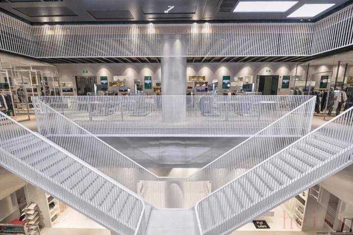 YOHO!STORE位于南京艾尚天地,面积达5000㎡,分为地下一层、地上两层,旨在呈现包括潮流零售、服务体验及各种潮流活动在内的潮流内容。店内的货架上方有一块约40mm高的镜面屏,用于播放品牌的介绍以及新品展示。