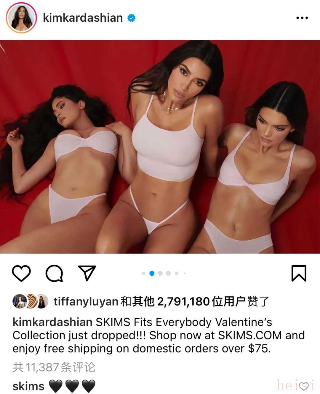 卡戴珊姐妹也作为“课代表”在情人节积极上身示范,她本人也在配文中声称“SKIMS适合所有人”。