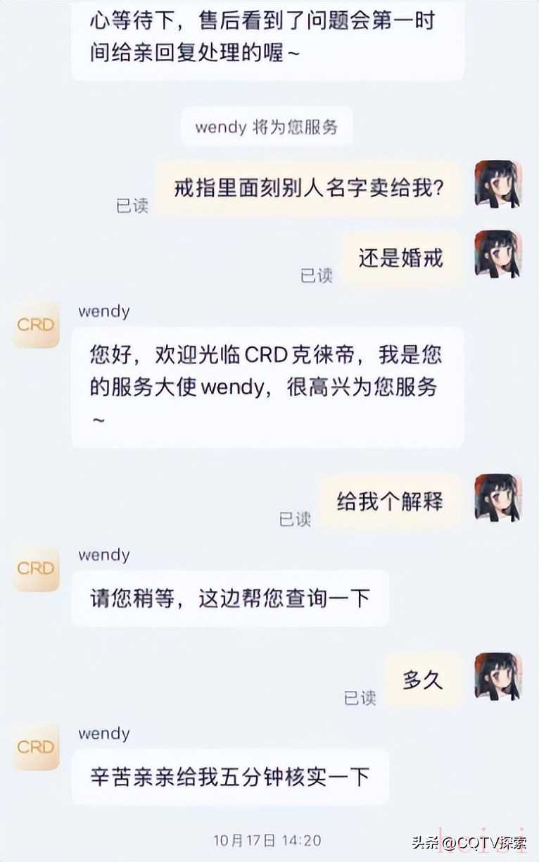 据上游新闻报道,10月23日品牌售后的工作人员回应媒体称,可能是“发错货物”导致的。她强调,“人工操作确实存在一定错误率。”“临近双十一淘宝平台订单出货比较多,我们需要调取监控,并向发货人员核实了解情况,先排除是否是把别人的定制戒指错发给了该顾客。”