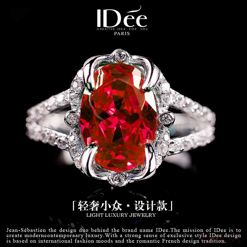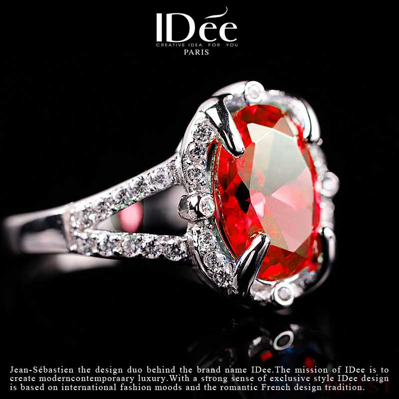 (Translation: The French IDée ring features a brilliant and transparent red ruby at its core, as if condensing the warmest morning sunlight. The gem refracts a romantic and enchanting luster, flowing with intoxicating charm with every rotation. The band design is exquisite and delicate, perfectly outlining the beauty of the ruby, exuding an understated taste and sense of high quality overall. It's not just a ring, but a perfect fusion of French romance and meticulous craftsmanship, suitable for those pursuing uniqueness and elegance.)