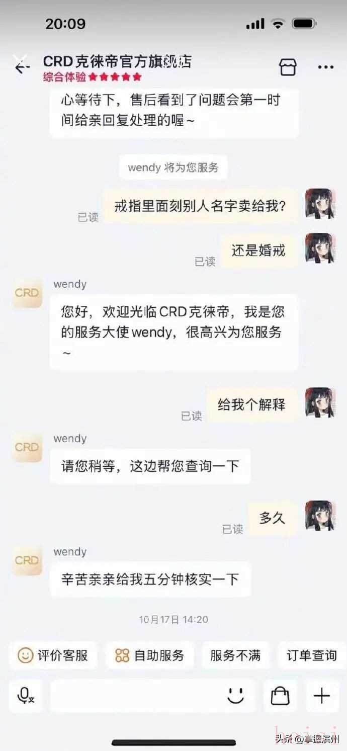 10月23日,克徕帝售后工作人员就项先生反馈的问题回应记者,称可能是“发错货物”导致,“临近双十一,平台订单出货较多,我们需要调取监控,并向发货人员核实了解情况。先排除是否是把别人的定制戒指错发给了该顾客。”她强调,“人工操作确实存在一定错误率。”