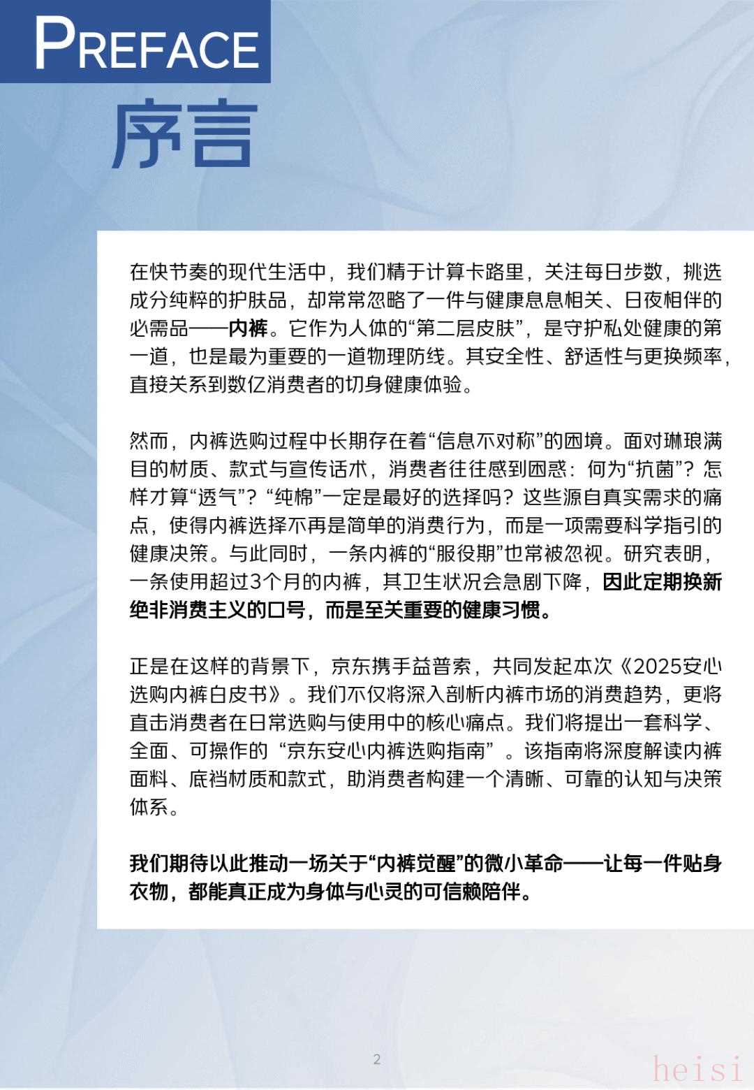 白皮书显示,京东内裤品类已进入双引擎增长阶段:男士市场占整体规模六成,但女士品类增速更快,潜力显著。2023至2025年,新锐品牌销售增长超50%,成熟品牌增长超30%,行业竞争焦点正从价格转向功能与体验。消费者行为日益精细化:男性展现“精致男觉醒”,客单价与品牌忠诚度双升;女性则为“购物主控”,购买频率比男性高15%。更关键的是,内裤消费正从“一款穿四季”转向“一人多款、按场景适配”——轻塑形、凉感、抗菌、速干等功能型产品增速迅猛,运动、生理期、居家等场景专用内裤需求激增。然而,三大痛点仍困扰用户:- 面料不适:闷热、摩擦、弹性不足;- 裆部设计缺陷:透气性差,误以为“买大码”可解决,实则忽视功能面料价值;- 超期服役:多数人用至破损才更换,忽略细菌滋生与功能退化风险。为破解选购难题,白皮书创新提出“W.E.A.R.安心内裤选购指标体系”:- W(Warmth & Moisture)温湿舒适性:调控体温与排汗;- E(Ease of Contact)接触舒适性:减少摩擦与刺激;- A(Appropriate Pressure)压力舒适性:适中支撑不勒腰;- R(Resistance & Protection)健康防护性:抗菌抑菌、防过敏。在材质选择上,白皮书详解三大主流面料:棉质亲肤但易闷热,莫代尔柔软透气,冰丝(锦纶) 速干凉感,建议根据出汗量、活动强度与肤质匹配。尤其值得关注的是“健康核心区”——底裆材质。除纯棉外,聚乳酸(玉米纤维)、银离子、艾草纤维等新型抑菌材料正快速普及,抗菌效力与耐用性各有优势。款式亦走向场景专精:女性细分基础舒适、运动无痕、蕾丝优雅、生理期防护四大类;男性覆盖日常基础款与居家阿罗裤;此外,一次性内裤、节日红品等特殊需求产品形成独立赛道。京东表示,未来将持续联合品牌推动内裤品类标准升级,通过数据洞察与消费教育,让“科学穿内裤”成为健康生活新常识。以下为部份《2025安心选购内裤白皮书》内容: