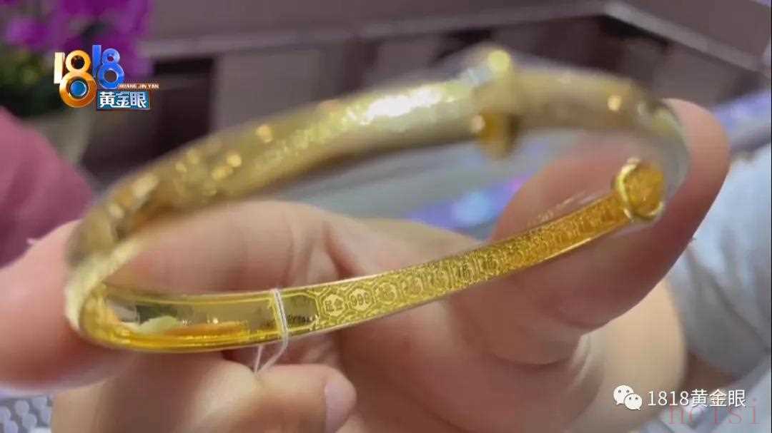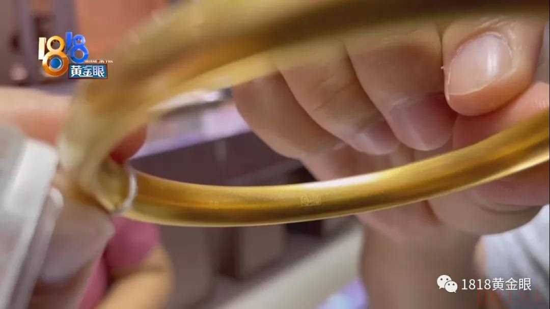现场,店员拿出两款金手镯,分别打了激光印记与钢印,按照店员的说法,激光印记只是在表面做一个标识,跟钢印相比,耐磨性肯定差很多。