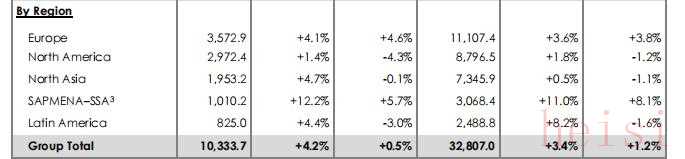 具体来看,欧洲地区销售额同比增长3.8%至111.07亿欧元(约合人币917.96亿元);去年同期,拉丁美洲地区实现了10.3%的双位数增长,在今年则录得24.89亿欧元(约合人民币205.71亿元),同比下滑1.6%,成为跌幅最大的地区。