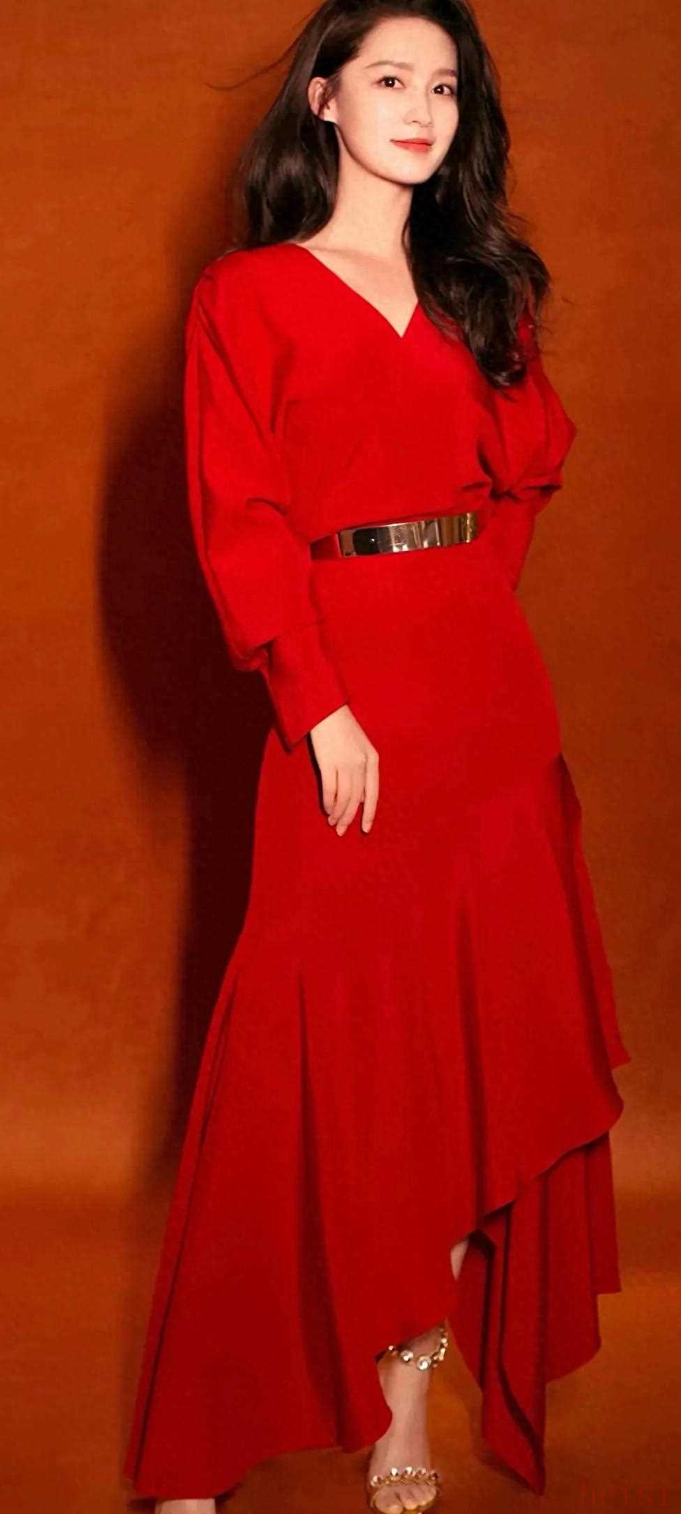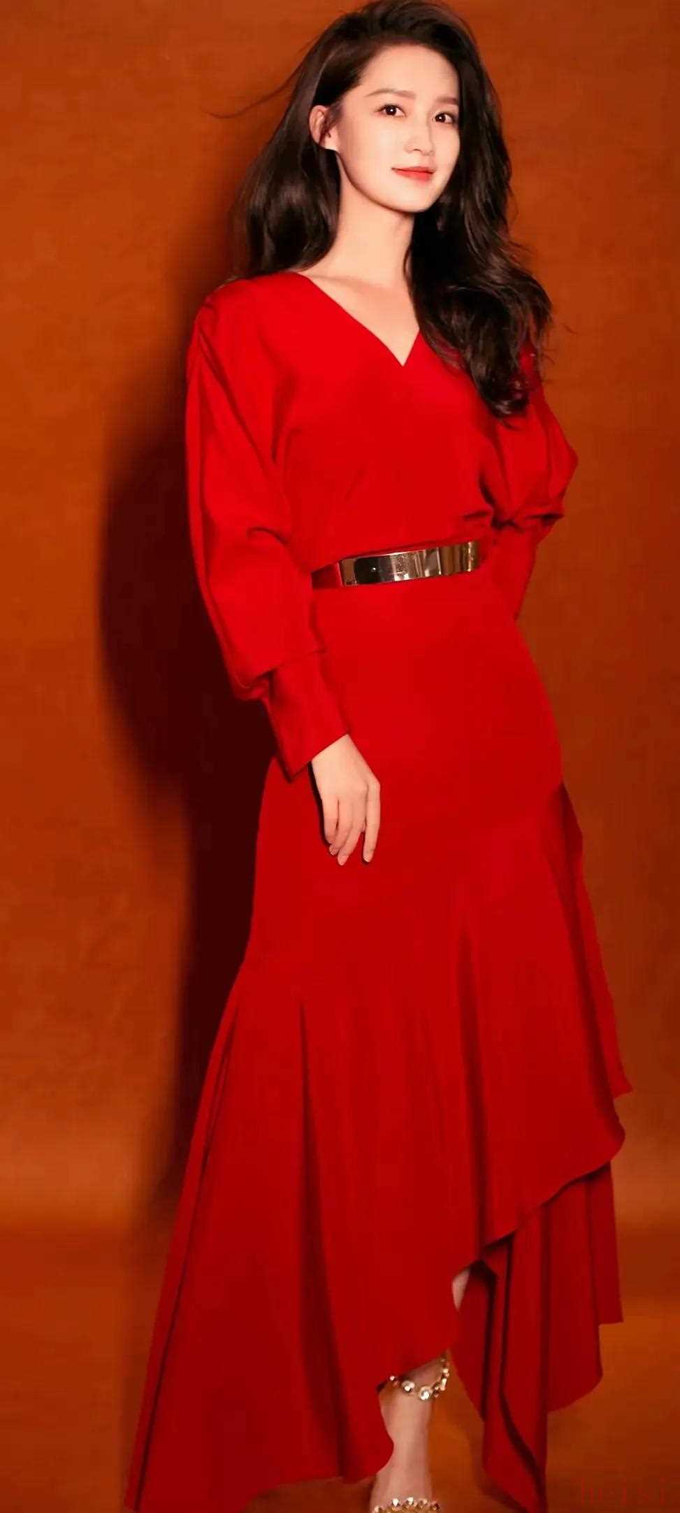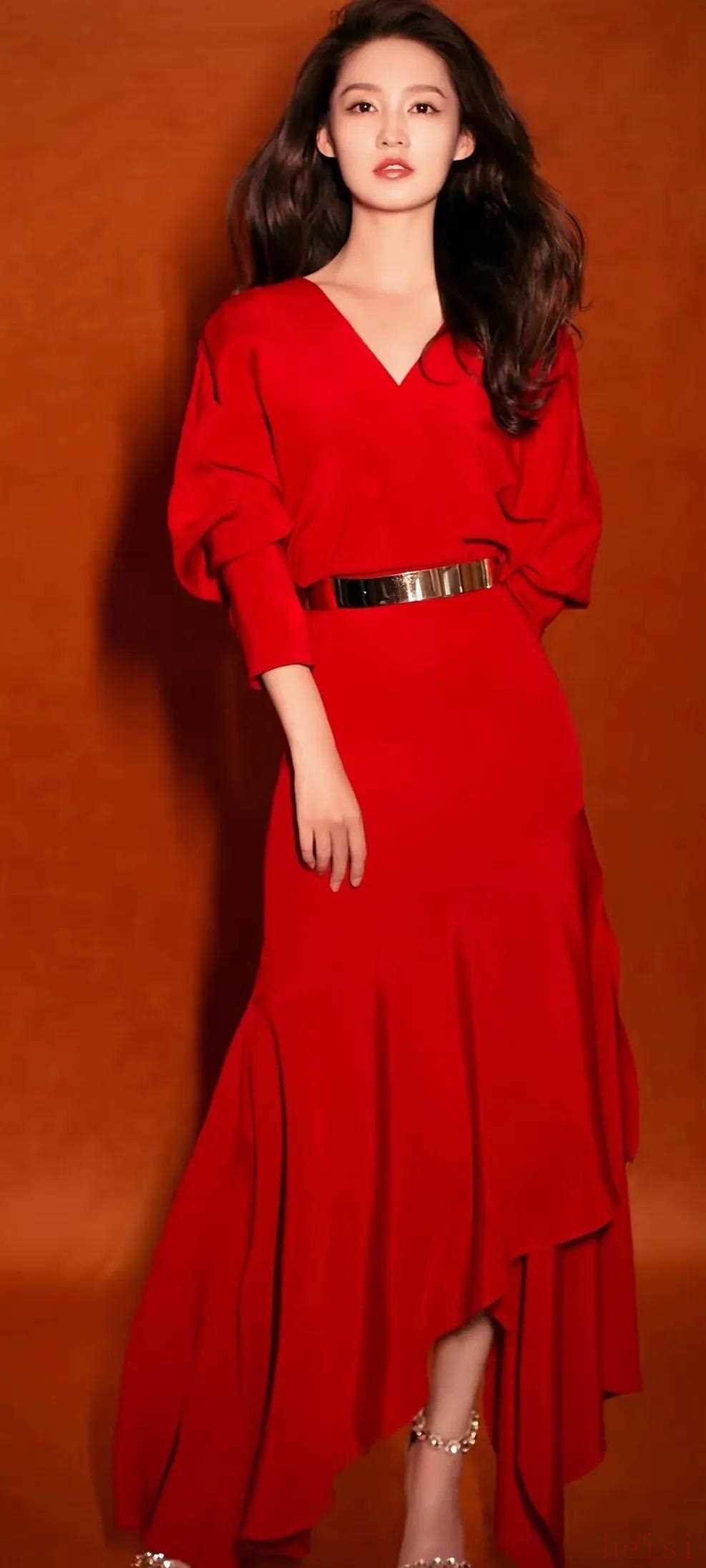 所以,说这身红色雪纺连衣裙让她靓丽抢眼,是非常贴切的评价!真好看!