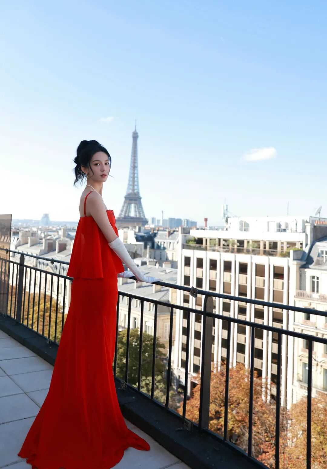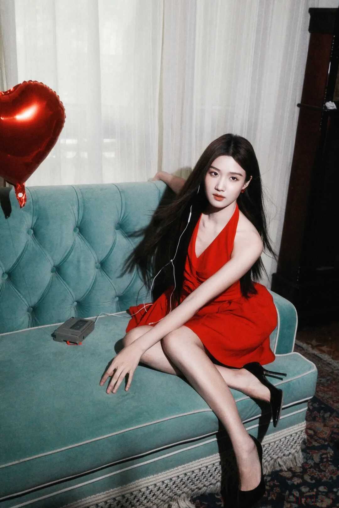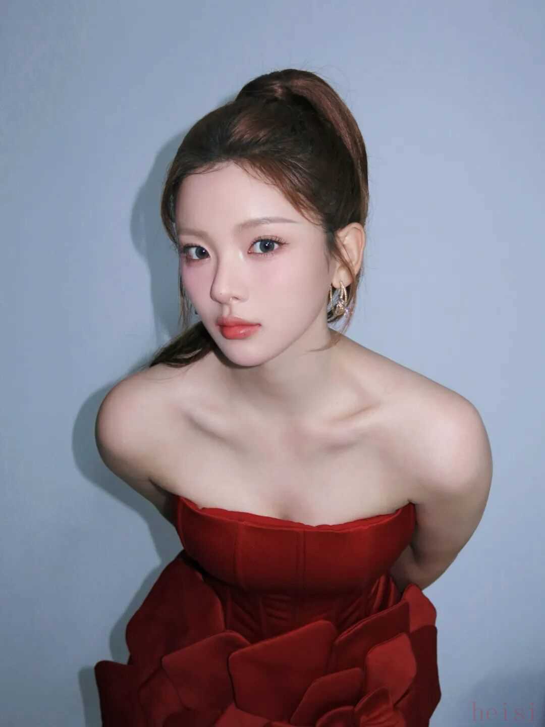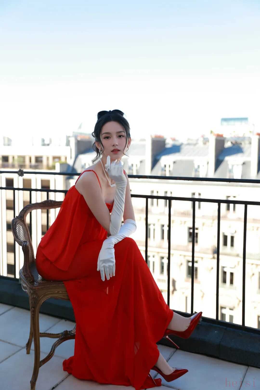 抹胸红裙的设计,大胆地展露出精致的锁骨和优美的肩部线条,凸显女性魅力。红色鲜艳夺目,不仅衬托出她白皙的肌肤,更增添了热情、活泼且高贵的气质。整体穿搭时尚大方,将她的青春靓丽与优雅气质完美融合。