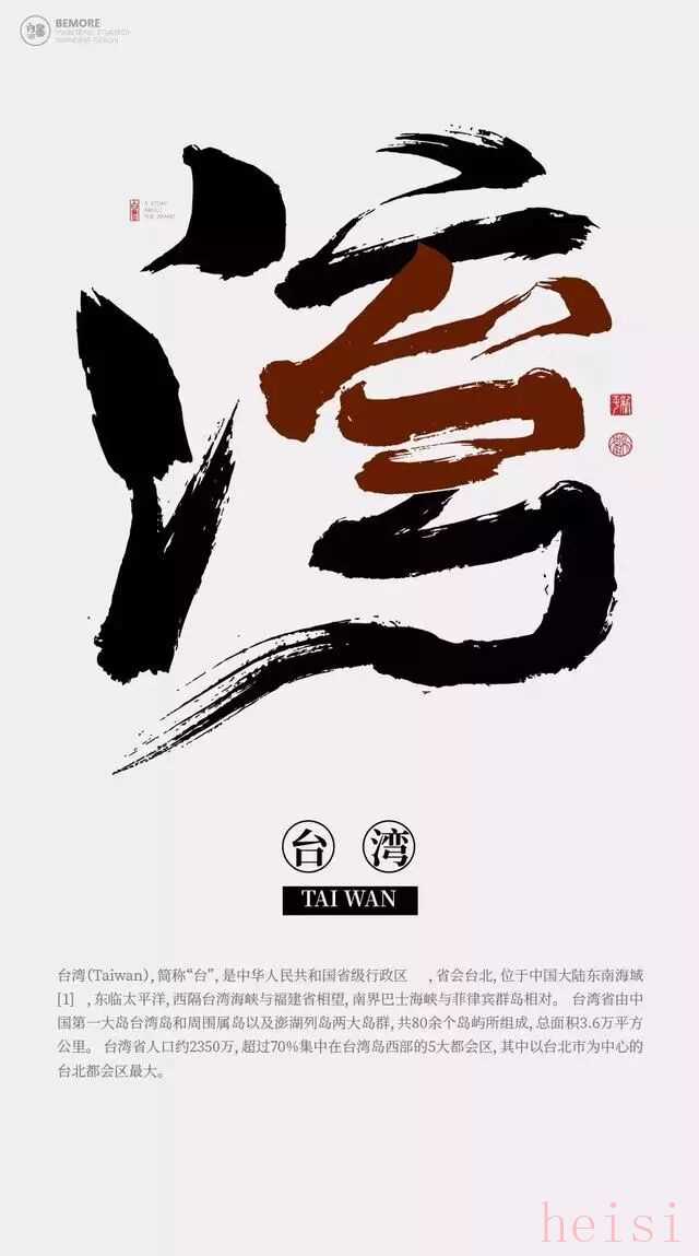 一会儿可要仔细瞧这位大神将每个省和市的名字巧妙地融合成了一个字让我们看到,书法元素与设计的结合简直太美了,佩服佩服