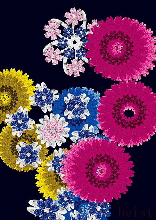 大部分的花卉珠宝,设计灵感都来自于真实世界中存在的某种鲜花,并致力于在造型上重现花卉的自然形态。尚美巴黎(Chaumet)的Hortensia绣球花系列珠宝作品,便取材于拿破仑一世之妻约瑟芬皇后的挚爱花卉。作为该品牌的缪斯女神,约瑟芬皇后对小女儿的爱称“Hortense”便源于她对绣球花的情有独钟。该珠宝系列以丰富灵巧的造型和形态万千的花姿著称,以三维立体工艺将许多平面精心拼接在一起,使绣球花簇丰富细腻,鲜艳诱人。