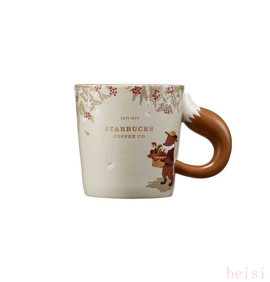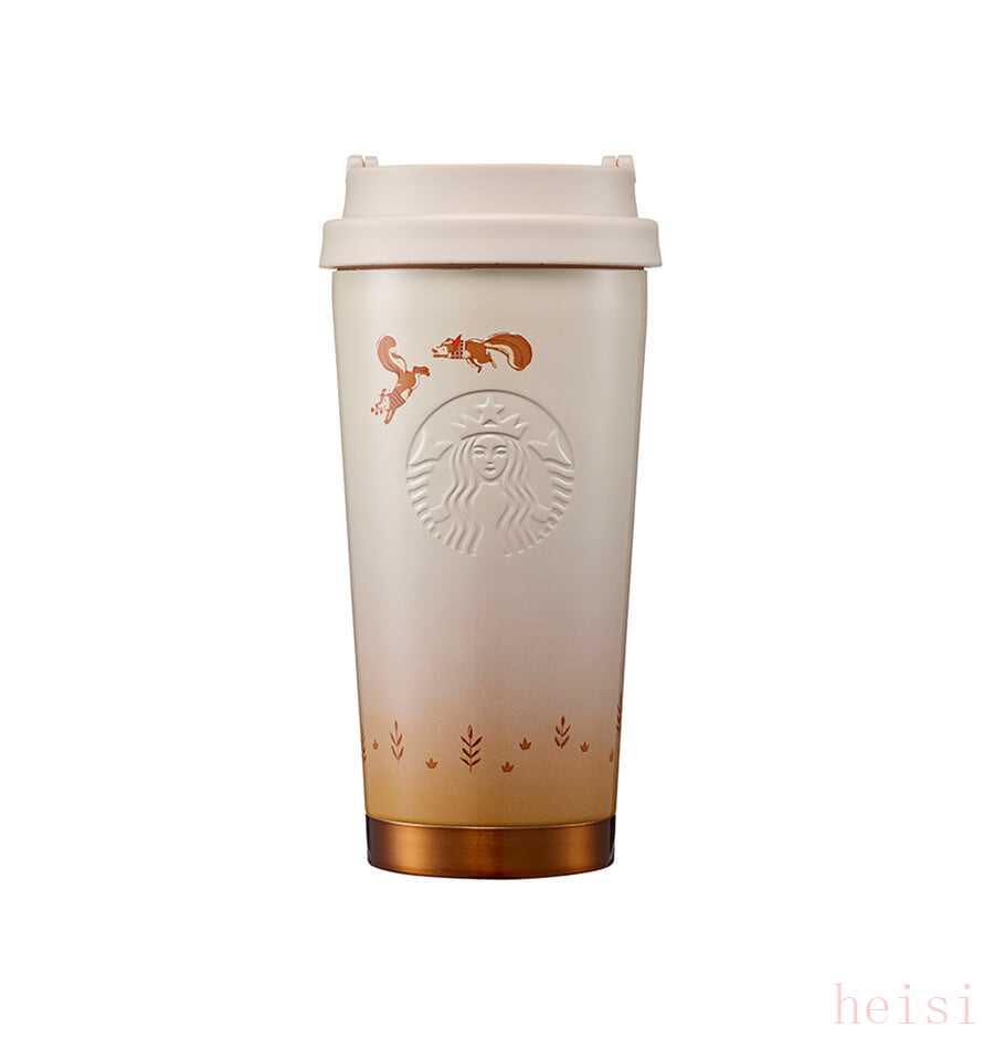 设计师将动物作为主题,从兔子、松鼠和狐狸入手,将整个系列划分为棕金色和白色两个部分。对应动物的毛发色彩,棕金色系列毫无疑问是属于狐狸和松鼠的。除了常规的保温杯外,韩国星巴克此次还特别制作了一款倒立的“松鼠头”双层水杯、一款将手柄做成狐狸耳朵的马克杯和一款模仿编织竹篮廓形的陶瓷杯,满载秋意氛围的棕色装饰在其上,让人联想到铺满落叶的树林和旧日外出秋游的时光。