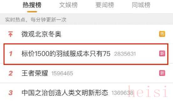 这个新闻确实是近期引起广泛关注的热搜话题。知名羽绒服品牌标价1500元,而成本仅75元,这个巨大的价差引发了网友的热议和思考。