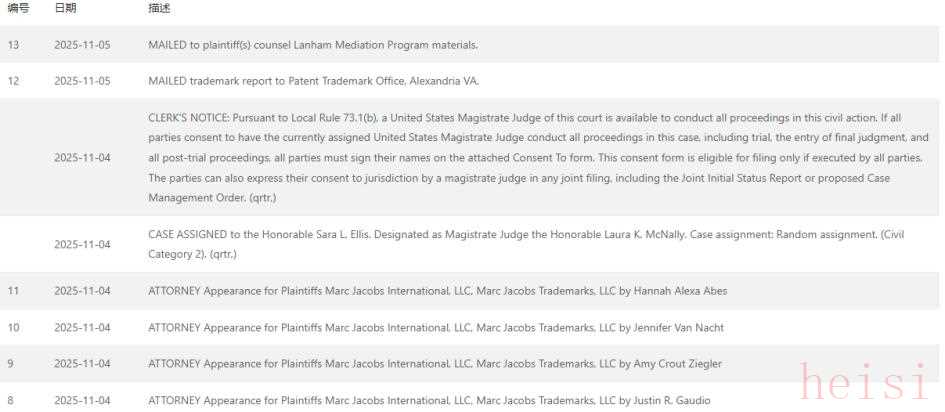 本案由GBC律所代理Marc Jacobs Trademarks, LLC发起商标维权案件,涉及品牌“Marc Jacobs”多个文字及图案商标,建议跨境卖家抓紧时间排查并下架相关产品,未经授权请勿使用。