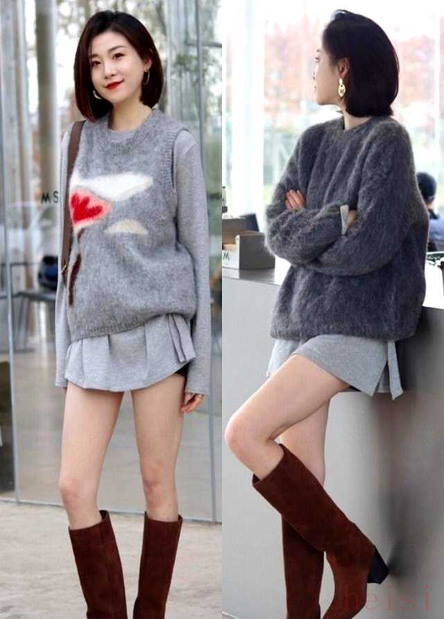 搭配比想象中省心。九分直筒牛仔裤露出一指靴筒,大衣扣上腰带,人瞬间拔高。怕冷换条加绒锥形裤,裤脚塞进靴筒,外面套件长款羽绒服,只露三厘米鞋跟,雪地里也不显臃肿。裙子更省事,A字裙摆盖到靴口,腰线提到肚脐,六十岁也能穿出挺拔感。