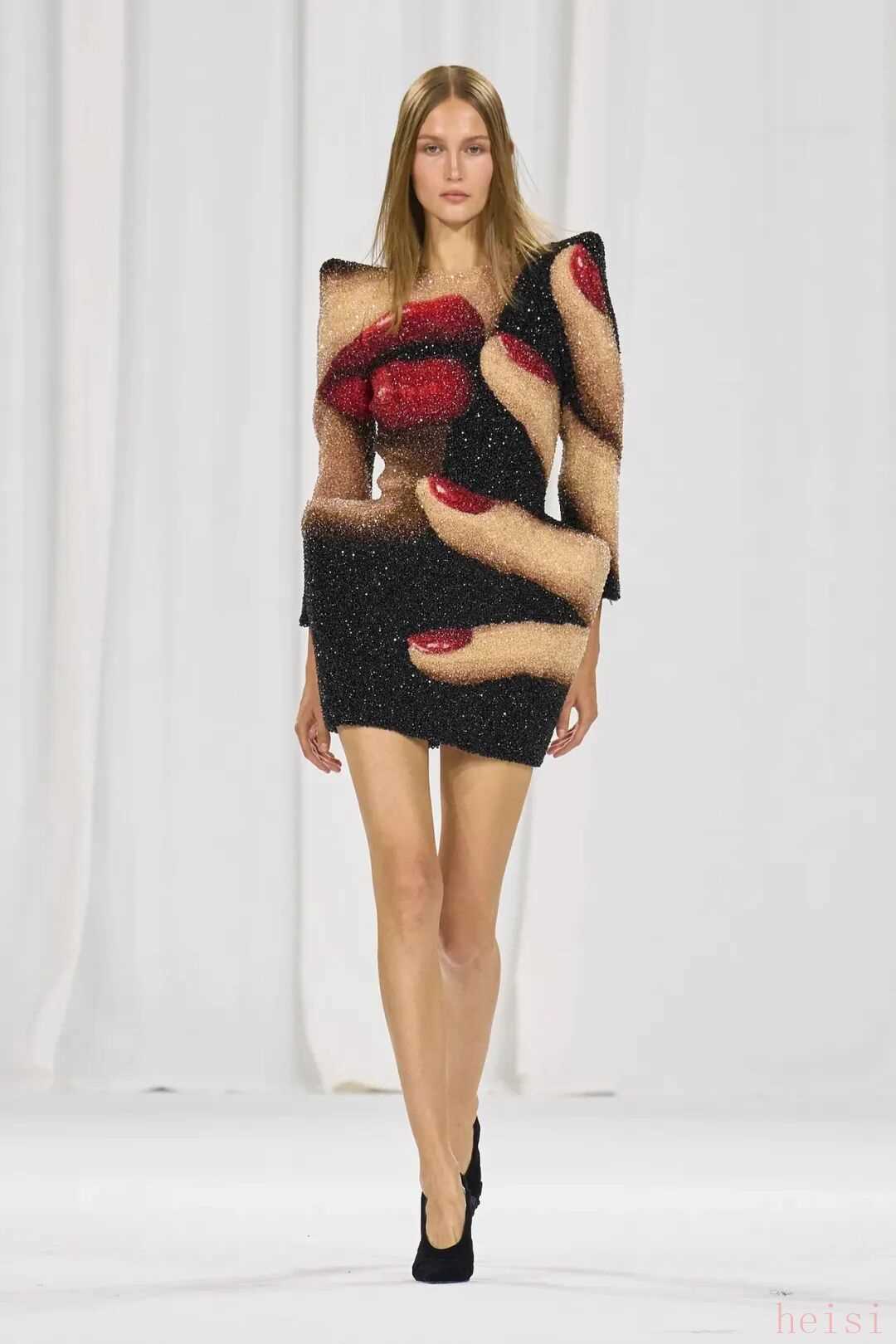 “我对他呈现的作品非常敏感。因为这让我仿佛注射了一剂‘初心针’,重回刚出道时的状态。那种我曾拥有的能量,看待时装的方式。有趣的是,如今人们大多只认识我的高级定制作品,却不太理解当年那个时尚叛逆小子的模样。”Gaultier毫不避讳地谈到了那件处在舆论漩涡的裸体印花紧身衣,“我确实做过裸体主题,但从未使用如此浓密的毛发!他加以强调,增添了别样的趣味。这并非简单的复制,完全不是,但或许受到了一些我过往的启发。”