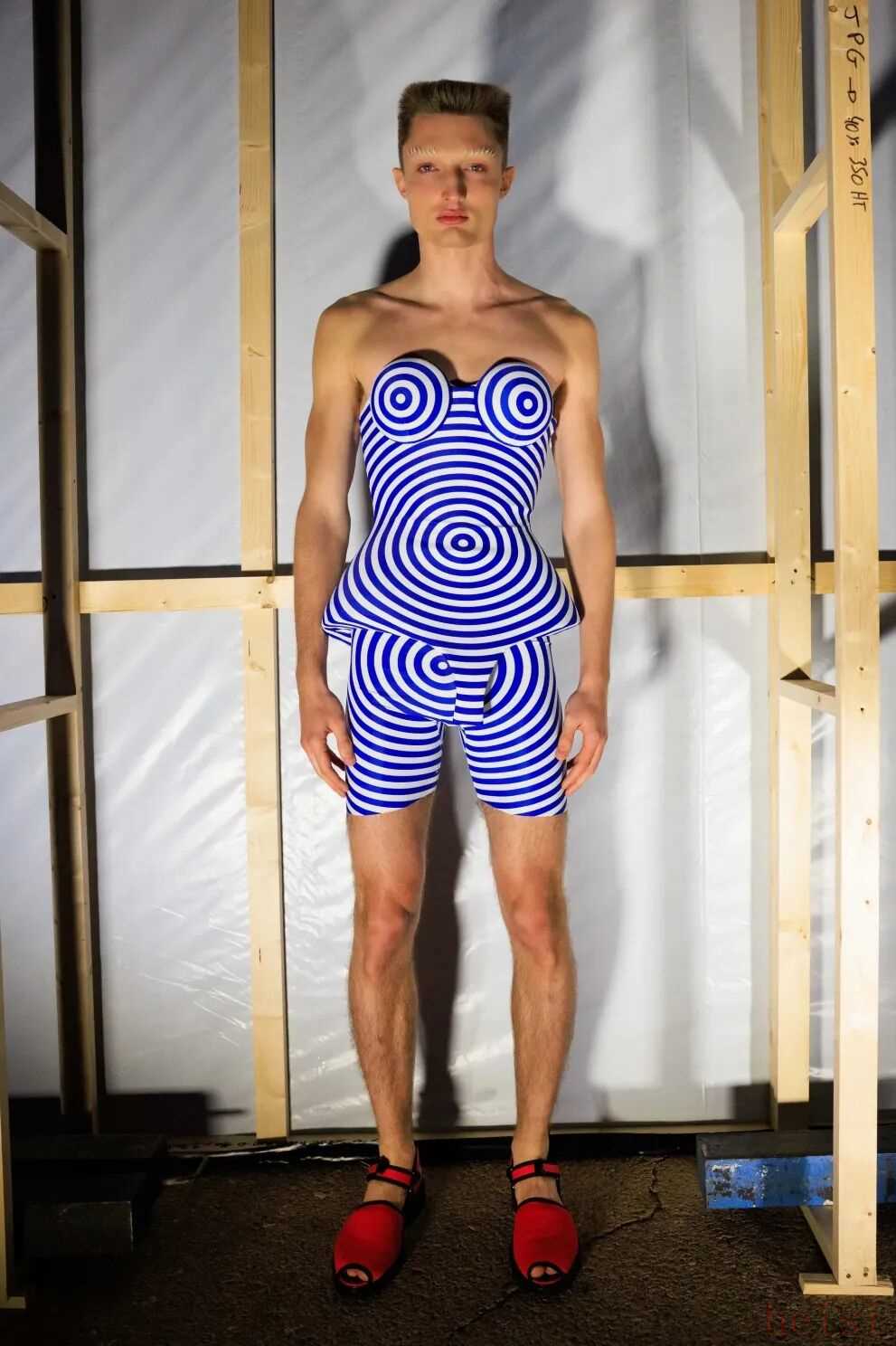 “当年的我们不像现在人们这样畏首畏尾——当然现在有时确实需要谨慎。我刚出道时,有一群年轻新观众在为我鼓掌支持,而保守派观众则完全避而远之。”或许Lantink正在经历与Gaultier创立品牌初期所相似的遭遇,区别大概在于Lantink那身裸体印花包含了更多“蓄意挑衅”的成分,但他也对晚辈表示理解,“我认为总有些设计师怀揣着要表达、要证明的东西——有时最需要证明的对象是自己。”也许Lantink的这种看似极端的做法,正是要向外界大声疾呼自己的“存在”,不过换个角度想,作为年轻一代,敢于颠覆和挑衅,总比畏手畏脚和中规中矩要好。就像Gaultier所说的,“它让我再次感受到自己年轻时的那部分,以及我最初的精神,也许它仍然存在于某个地方。”这应该就是Lantink被选中的原因。