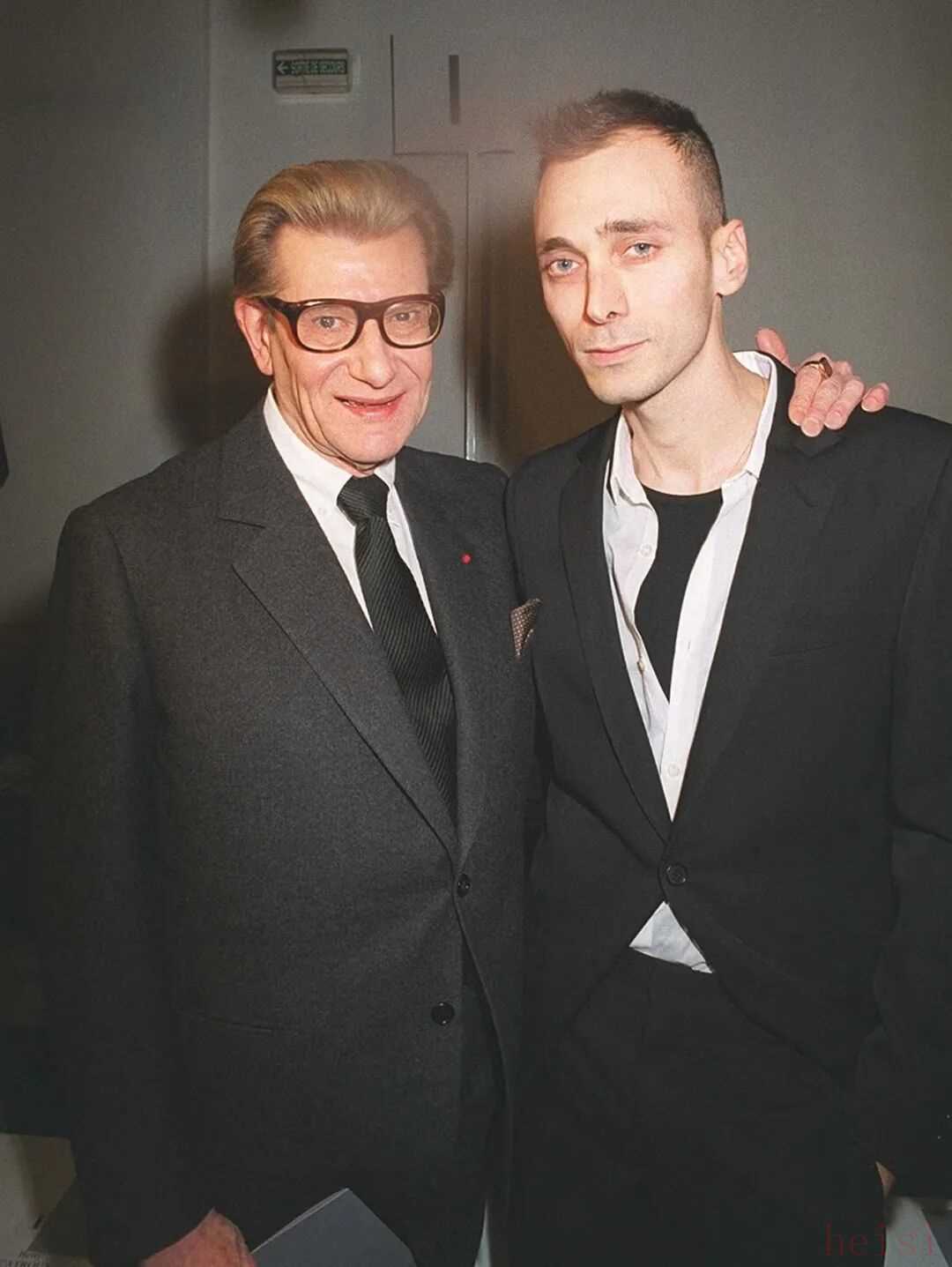 “Slimane和Armani的风格完全不搭”当然是最主流的论调。从1996年担任Yves Saint Laurent男装设计总监开始,极致修身的男士西装就成为了他此后近30年来的风格核心,无论是在Dior Homme将这种超窄版型发扬光大,还是在重回Saint Laurent后延续这种审美偏好, Slimane给人们留下的时装形象都如出一辙,这与Giorgio Armani曾经主张的宽松剪裁和高级优雅的时装态度显然背道而驰。