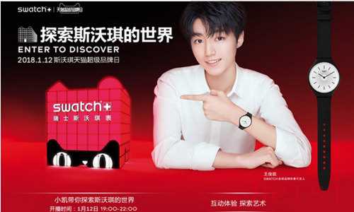 2018年1月12日,瑞士知名钟表制造商斯沃琪携手天猫超级品牌日为所有品牌爱好者打造了一场趣味横生的精彩盛典,粉丝与品牌形象代言人王俊凯一同探索斯沃琪的世界,领略时光在腕间流动的美妙。