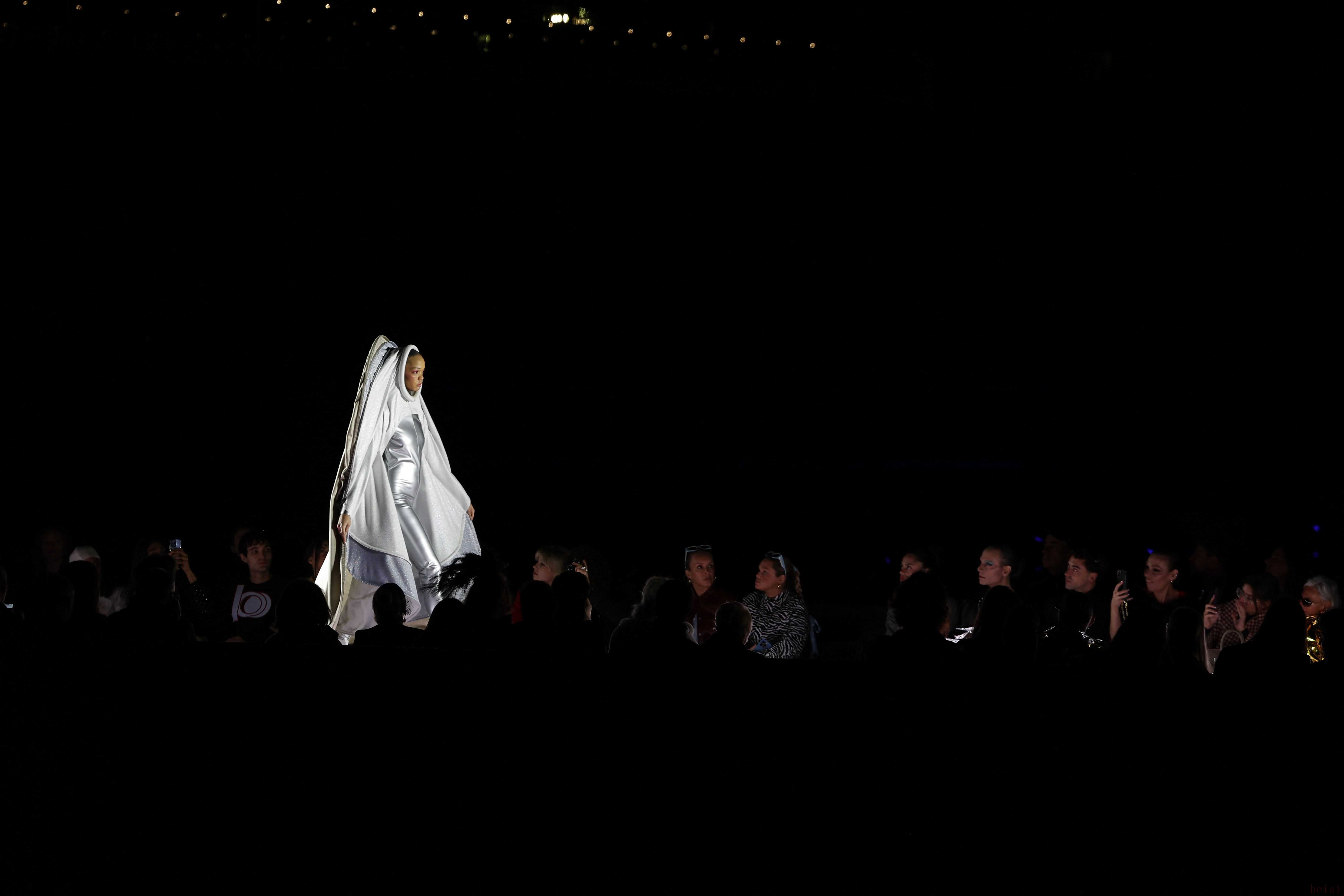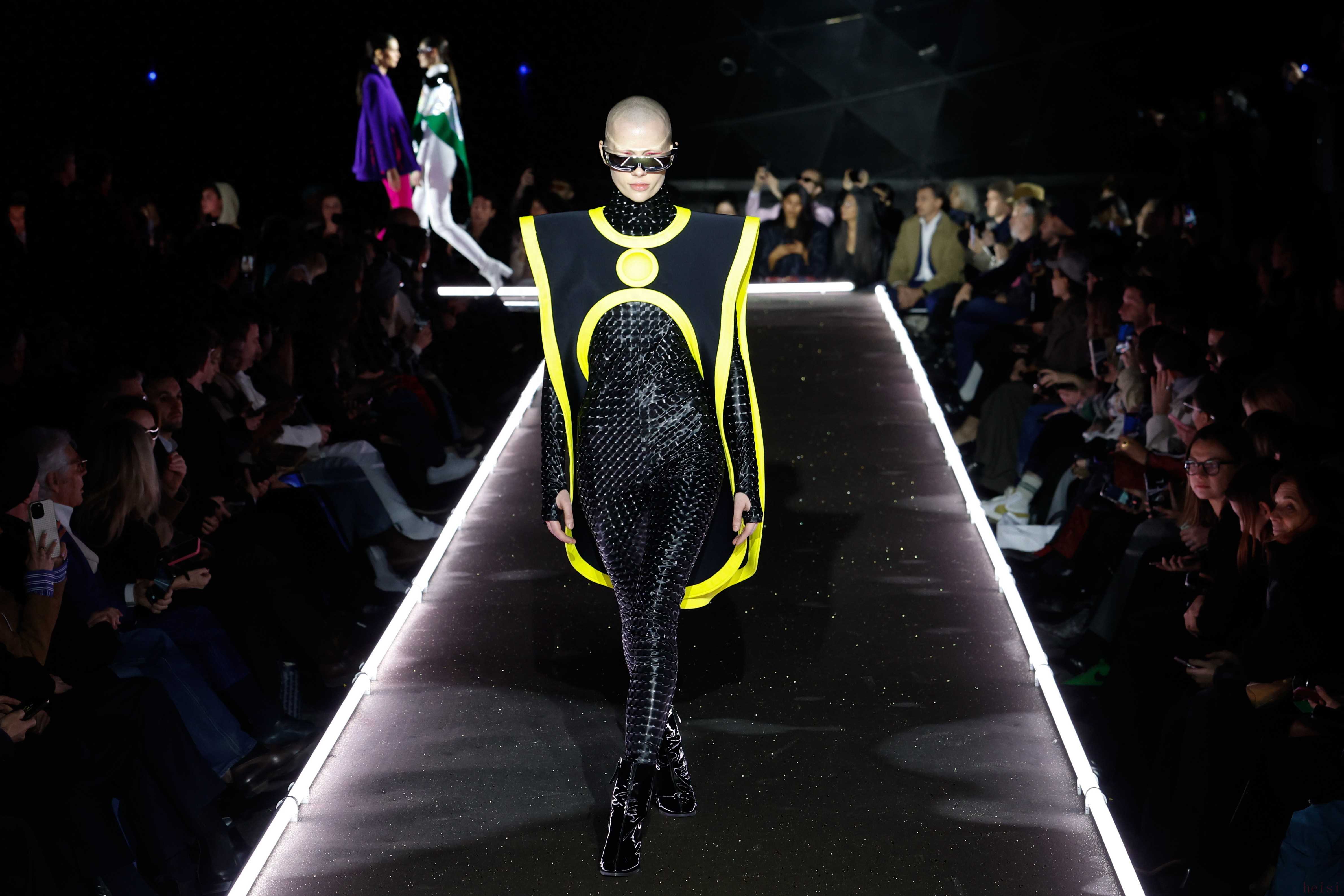 3月10日,模特在法国巴黎时装周上展示皮尔·卡丹品牌的2025/2026秋冬新款服装。新华社/法新