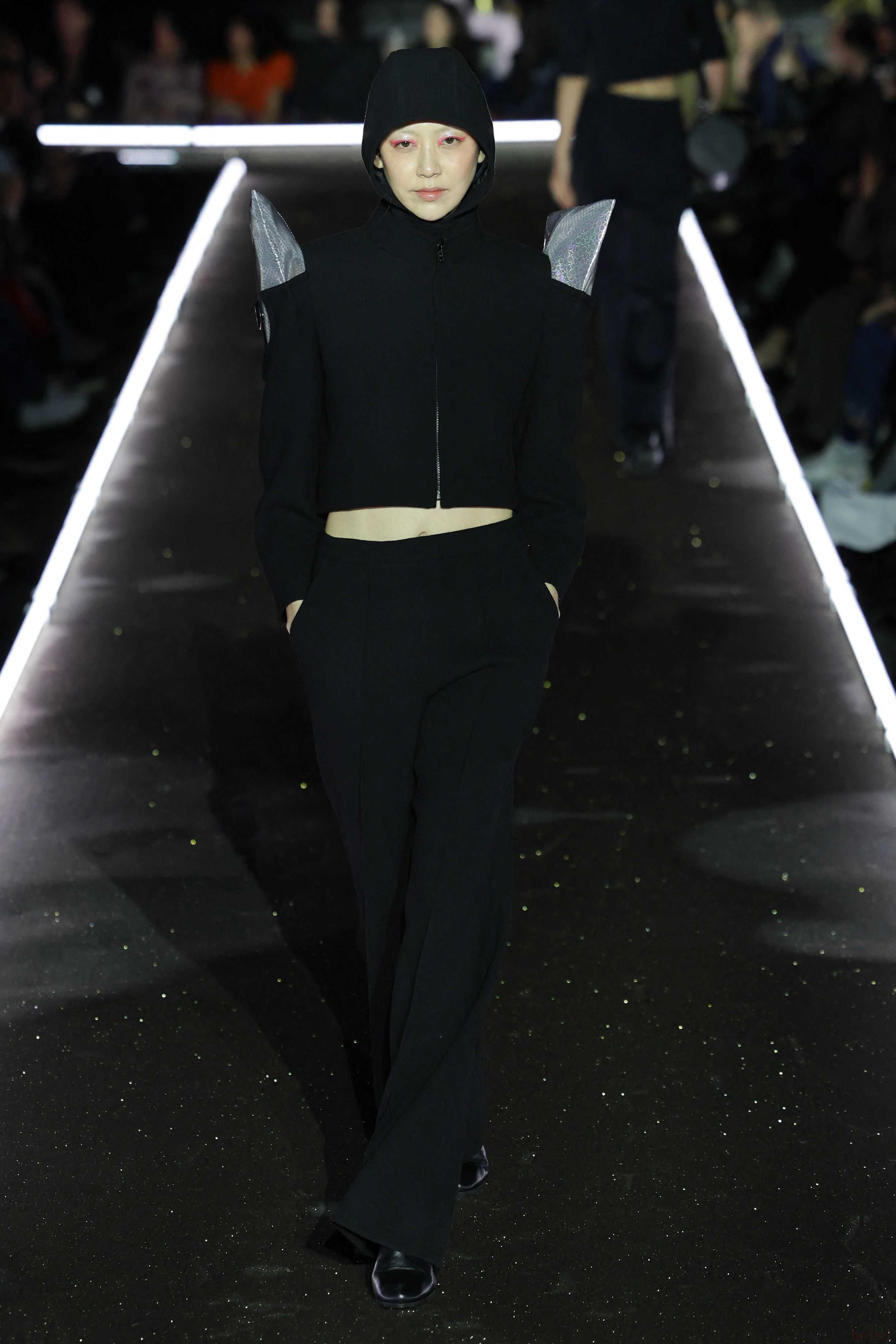 此次时装秀的设计延续了皮尔·卡丹品牌一贯的宏大、优雅且富有力量感的风格。设计师可能聚焦于展现结构感强烈的剪裁,例如标志性的不对称设计、流畅的线条以及精致的细节处理。服装整体风格可能呈现出一种现代的奢华感,融合了东西方元素,既有巴黎式的精致,也可能融入了东方的含蓄与韵味。色彩运用上,可能会选择经典的高级色调,并辅以一些亮色或对比色作为点缀,营造出视觉上的冲击力与层次感。整体而言,旨在呈现一系列既适合日常穿着,又具备高级时装艺术价值的作品。