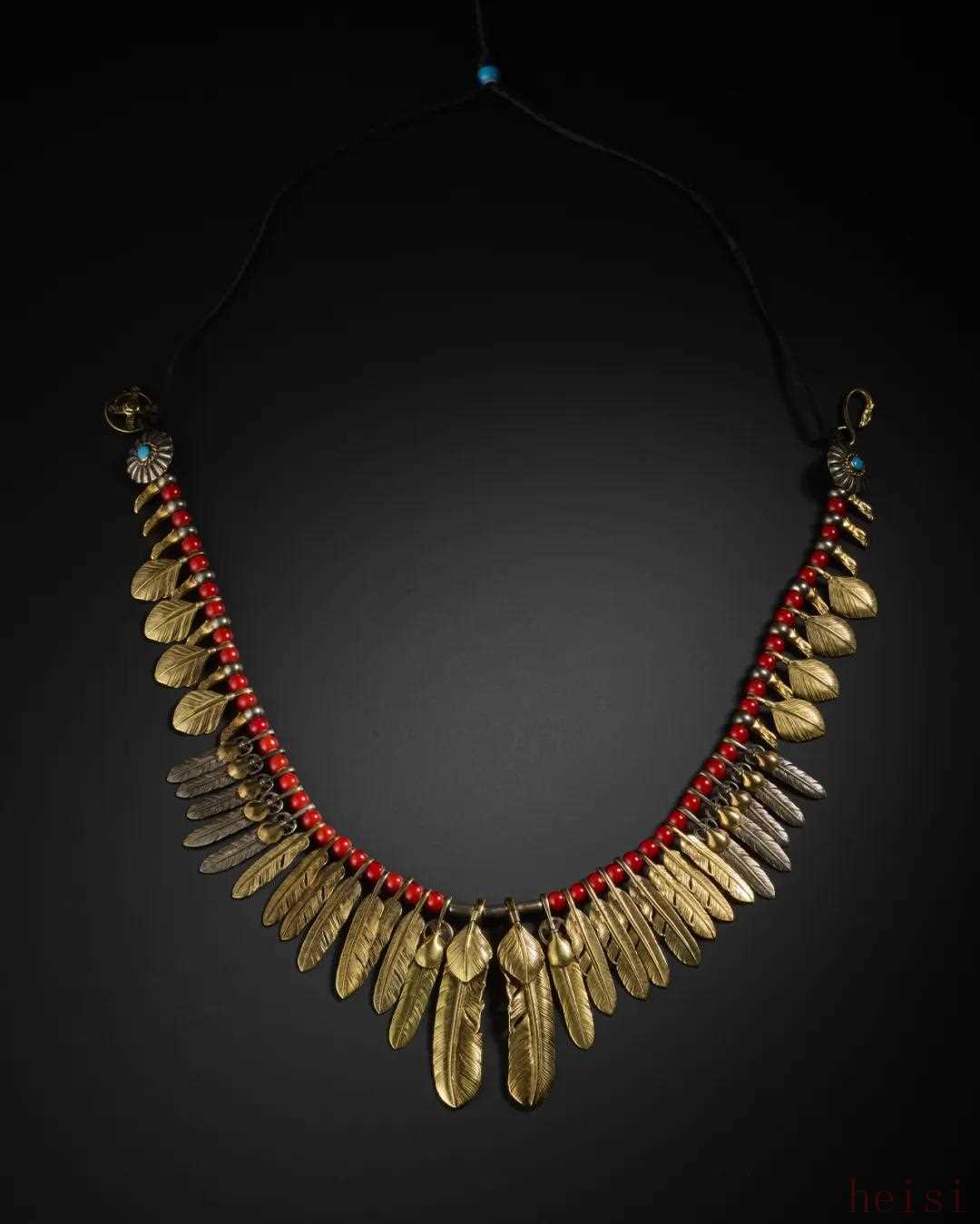 特别值得一提的是,GORO'S 金贝上金羽毛左向 XL、GORO'S 金贝上金羽毛右向 XL、GORO'S 金贝直金叶 L 2 片、GORO'S 全金素叶左向 L 4 片、GORO'S 全金素叶右向 L 4 片、GORO'S 全金素叶左向 M 3 片、GORO'S 全金素叶右向 M 3 片、GORO'S 上金贝直银羽毛 M 4 片、GORO'S 上金贝直银羽毛 S 6 片、GORO'S 全金贝上金叶(已停产)8 片,这些全金上金羽毛系列,不仅造型精美,而且因已停产,更显珍贵。再加上 GORO'S 皮绳,将所有元素巧妙串联,全金、鹰头珠、银饰与天然松石、手工制造的琉璃珠相互搭配,充分体现出高桥吾郎独特的风格和卓越的制造技巧。