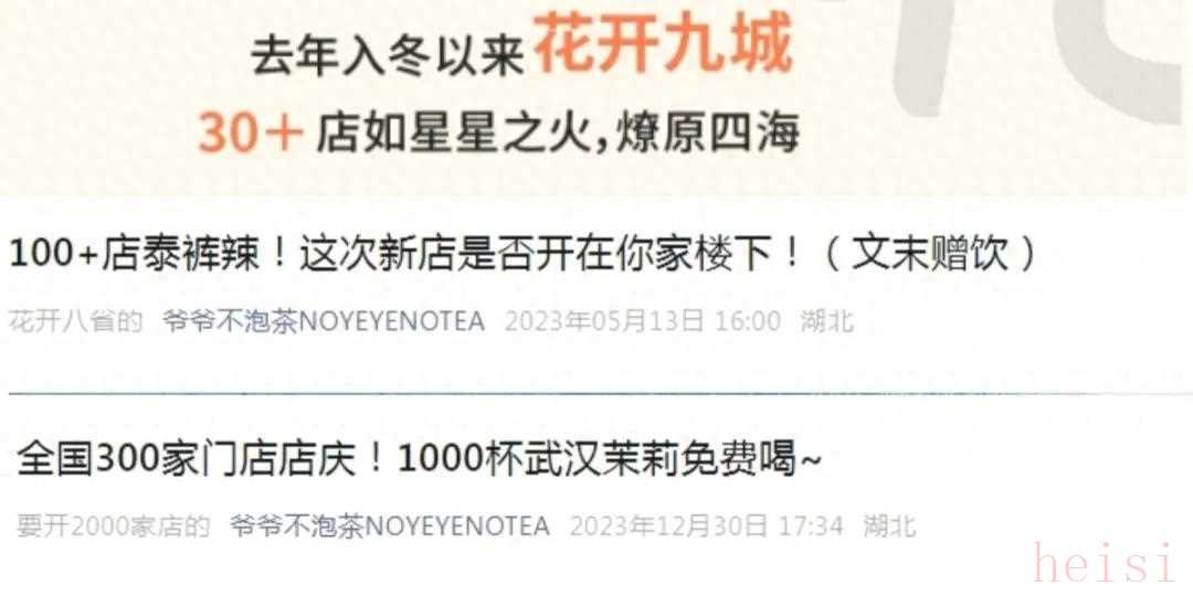 爷爷不泡茶公众号显示,2023年“五一”期间,共有100万人次购买爷爷不泡茶,多个门店爆单,产品总销售额400多万,单店营业额破20万……品牌销售额、知名度均大幅度提升,这也为其走出武汉,吸引外省的消费者和加盟商打下了基础。