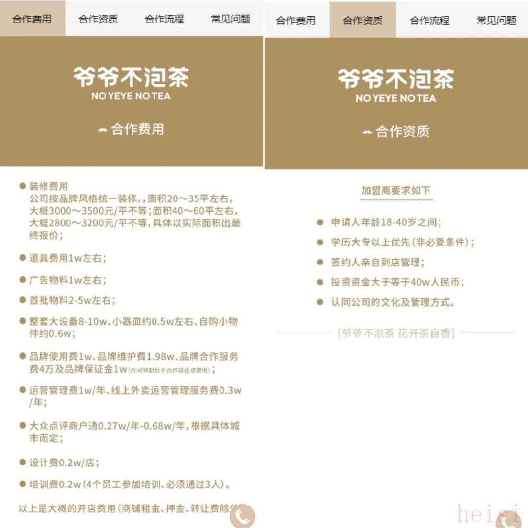 对比其他知名茶饮品牌,爷爷不泡茶的加盟门槛显然低一些。