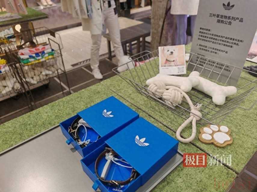 6月6日,极目新闻记者来到上海安福路三叶草旗舰店,宠物系列展台位于门店醒目的核心区域,设有限购公告称,为确保更多消费者能公平购买到心仪商品,现对宠物系列产品实行限购政策,同款同色商品每位顾客每日限购3件。