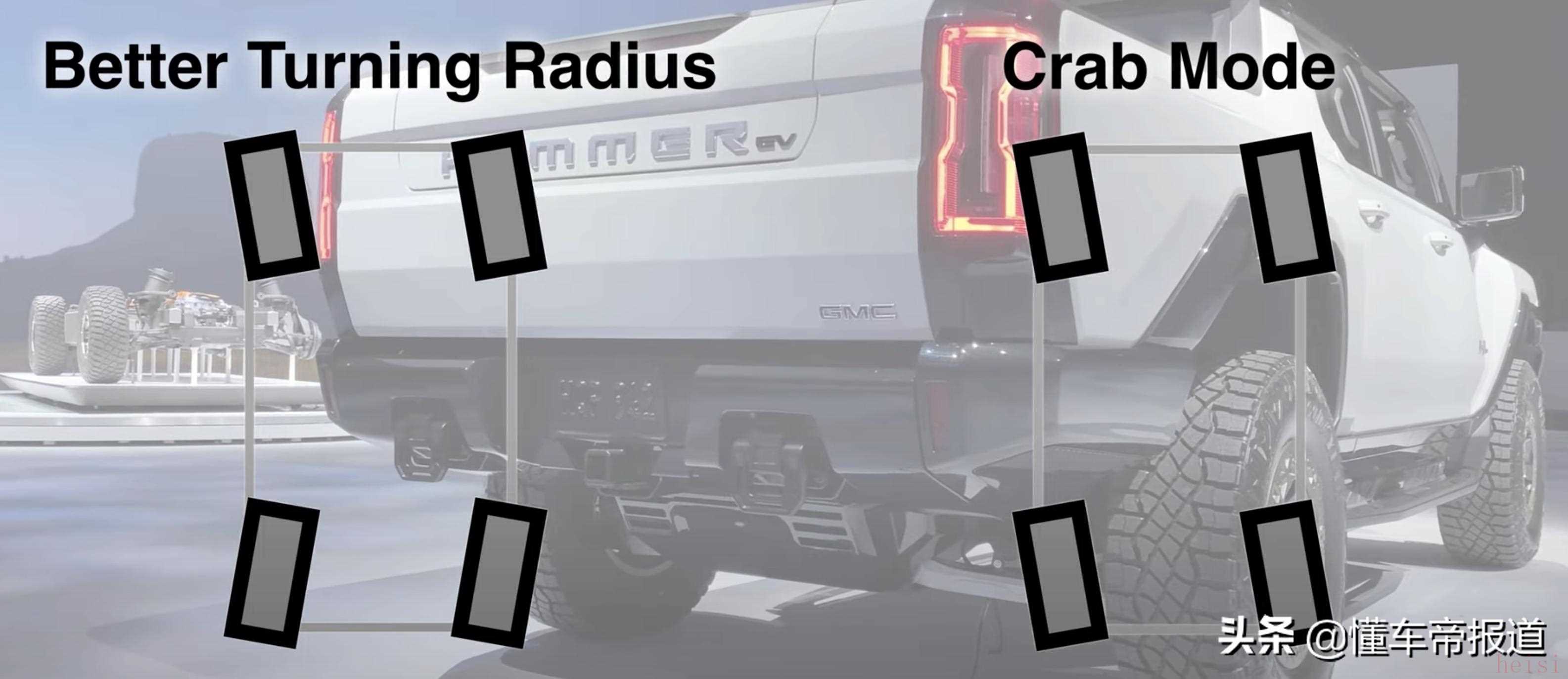 动力方面,HUMMER EV皮卡可提供双电机和三电机车型,其中三电机版最大功率为1000马力,峰值扭矩为1085牛·米,经过传动系统扭矩放大,理论最大扭矩为15592牛·米。同时,该车配备通用开发的Ultium电池组,EPA测试标准下的最大续航里程约为563公里,0-100公里/小时加速时间为3秒。此外,该车还配备有四轮空气悬架和可变阻尼自适应悬架系统,并具备螃蟹模式四轮转向功能。