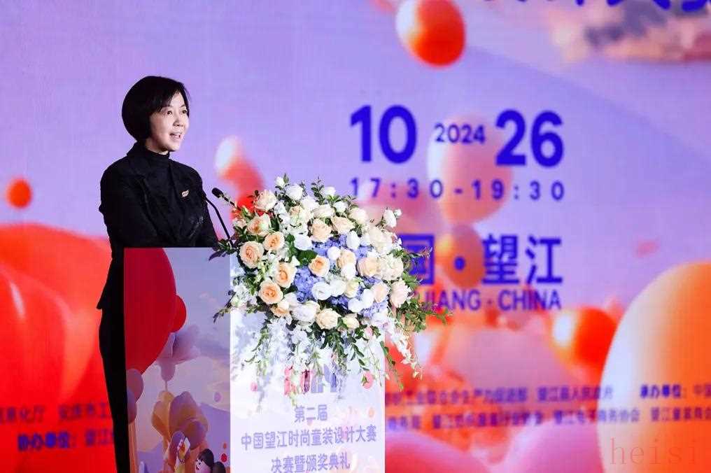 中国纺织工业联合会副会长、中国纺织信息中心党委书记阎岩阎岩在致辞中对望江纺织服装产业,特别是童装产业的快速发展给予了积极的评价。她表示本次大赛展现了望江纺织服装产业设计创新体系的崛起和提升,积极打造出代表中国童装设计领先水准与前沿设计能力的窗口型平台。面对习近平总书记所强调的要牢牢把握高质量发展这个首要任务,她希望望江“向新提质”,以“新设计”激发“新质态”、以“新人才”引领“新趋势”、以“新品牌”创造“新价值”,加快培育新质生产力聚势成型,加速打造望江童装时尚之都的行业形象。