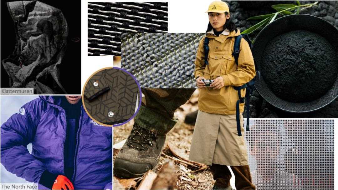 在组货搭配上,产品应主要将坚韧性和耐用性作为首要考虑,将功能性和灵活弹性设计相结合。量感外套提供保暖性,并推荐采用单一纤维软壳面料和哑光纹理来塑造出精致的极简外观。同时服装搭配体系十分关键,层搭造型搭配多口袋的隐藏设计与防护结构的的结合也兼顾了穿着者舒适性和保护性。建议采用环保面料作为保温打底层,是环保和动物友好性之选。此外,服装配件在户外运动中担任着极为重要的作用,应建立健全的产品结构。