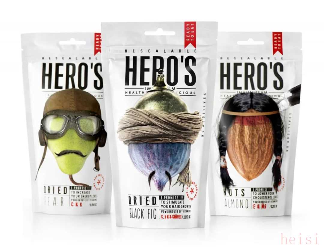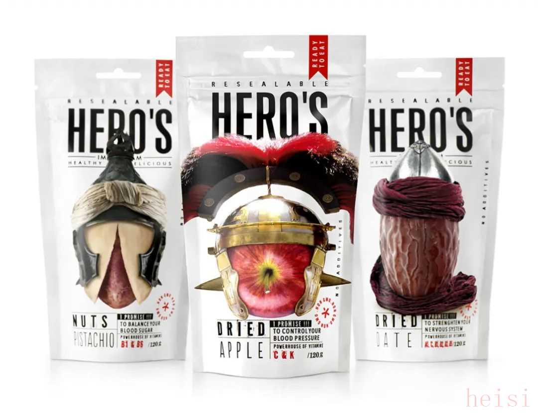 "特点:" 通常注重色彩鲜艳、图案生动、材质安全、信息清晰(成分、保质期、食用方法等)。目标是吸引眼球、传达口味和品质感。