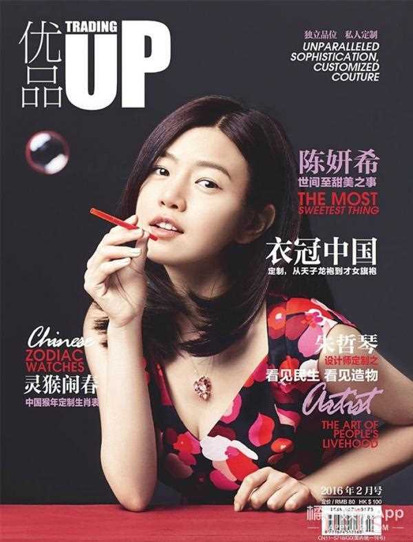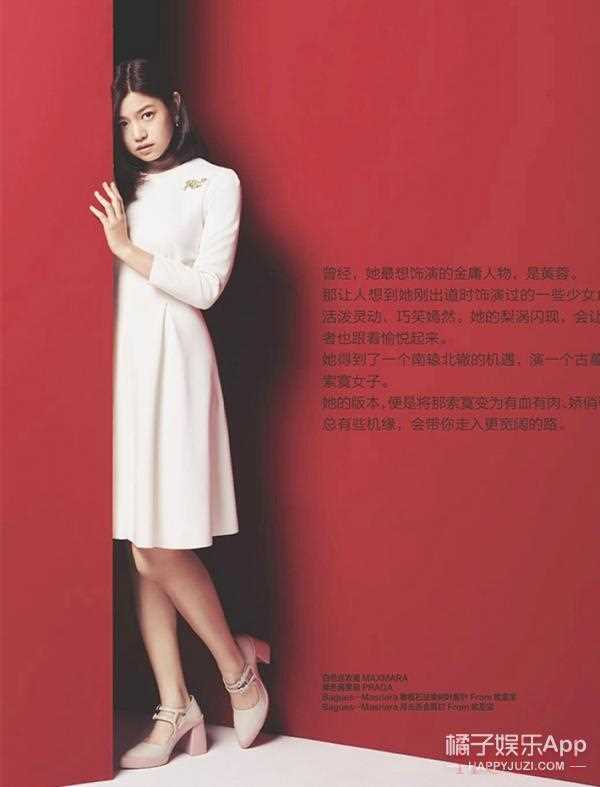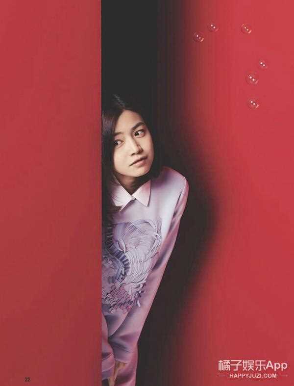 陈妍希一身红黑花裙登上封面,肉肉的小脸看起来非常自然。