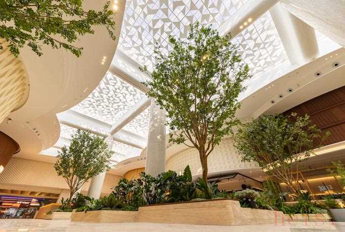 项目空间设计的“点睛之笔”——“光所市集” 突破传统购物中心封闭楼层格局,以“泉涌浮岛,空中绿洲”为设计意境,通过大面积透光穹顶与超高挑空设计,营造出兼具交互感、呼吸感与沉浸感的室内花园街区;景观价值上,这里可远眺经十路车水马龙与腊山落日余晖,凭借开阔视野成为济南城区“最佳日落观赏地”之一,形成独特的城市景观记忆点。