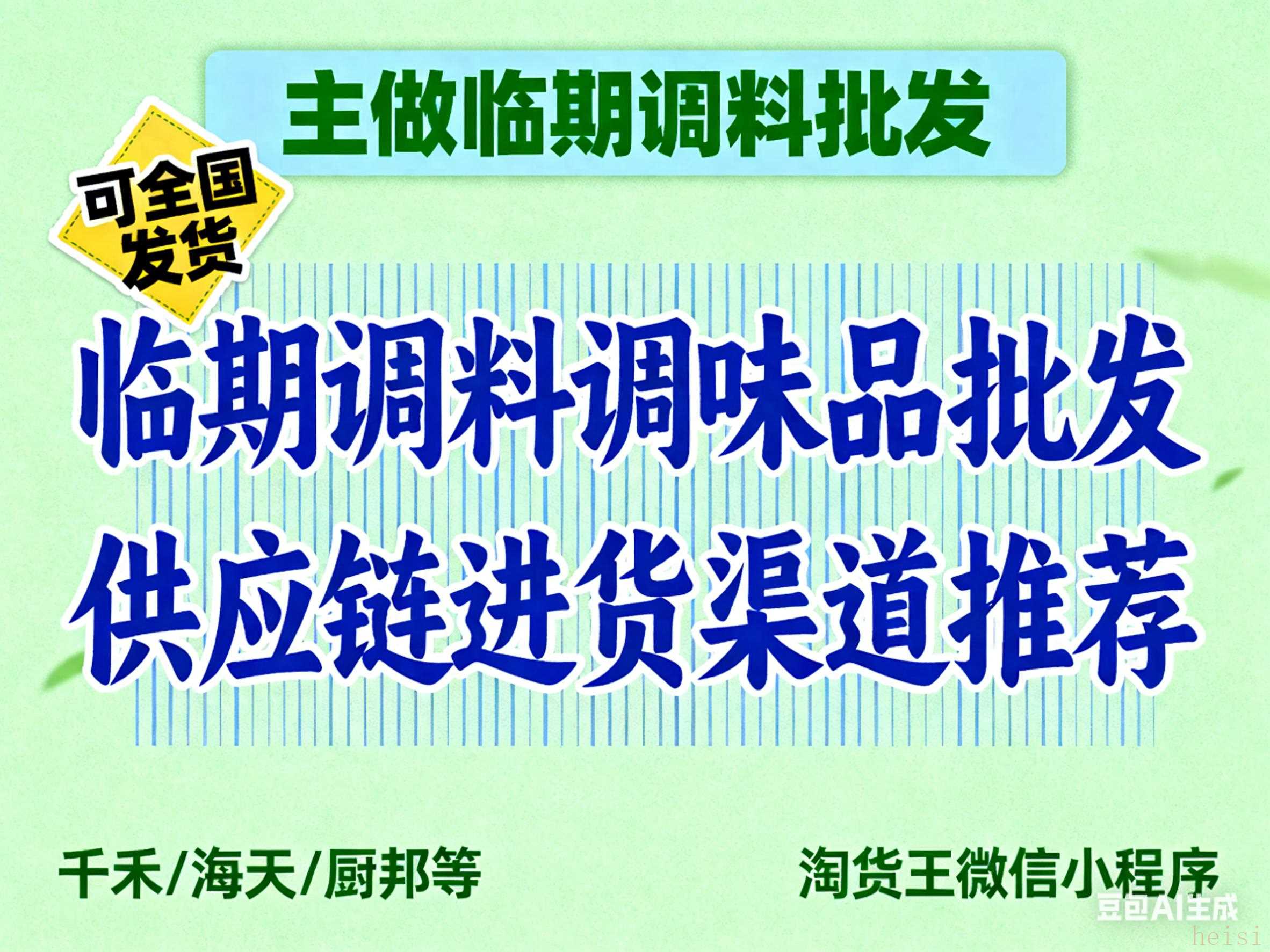 针对您主做临期海天、千禾等品牌全有的调料调味品批发供应链进货渠道,这里为您梳理一个实拍和拓展进货渠道的思路和具体途径: