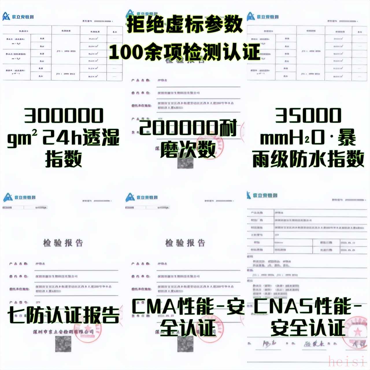 其核心突破在于“七防无氟”硬核科技:特创STOPS-X七防面料、SOPE-AIR防磨损涂层、蜂窝碟片式锁温结构及AOSS降风阻技术等八大黑科技,其核心性能指标与提升数据明确:20 万次抗磨损强度、35000mm 暴雨级防水能力、30000+g/m²/24h 透湿率;三大防护性能 —— 防风、防水、防磨损,分别实现 145.6%、163.2%、238.7% 的提升,满足高强度户外需求,更具备3倍抗静电、2倍锁温防寒性能。经超常规5年抗衰减认证,性能持久不衰减,远超半年衰减标准。