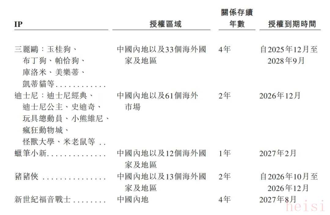 图/TOP TOY招股书截图自有IP数量不多,知名度也相对有限,在招股书中隆重列出的“糯米儿”甚至还是来自今年上半年刚花了五百多万买下控股权的潮玩公司HiTOY。TOP TOY在自有IP上的努力虽然存在感不强,但还是有点效果,今年上半年这方面产品收入达到了610万元,逼近去年全年的680万元。 TOP TOY当下的这本经,还是靠外来的和尚在念。 今年上半年,由授权IP开发的产品就为公司赚到了近6.2亿元,接近自有IP产品收入的100倍,三丽鸥系列、迪士尼系列、蜡笔小新等IP中的常青树级别选手,差不多撑起了TOP TOY总收入的半边天。