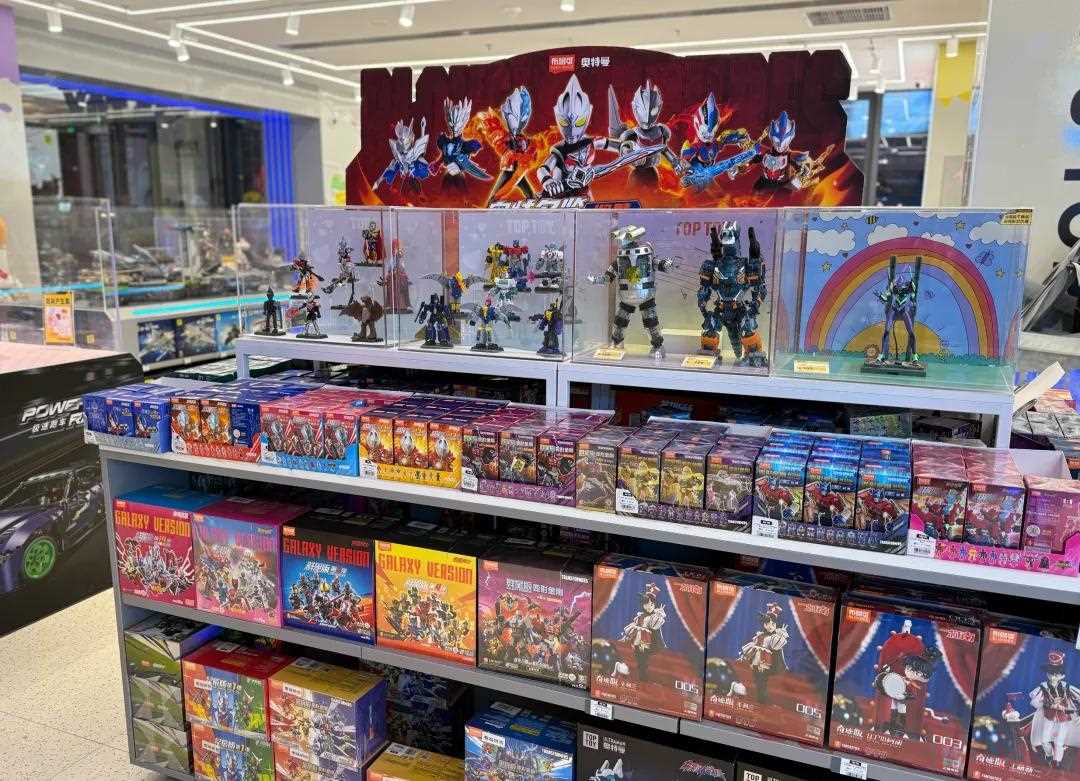 TOP TOY北京隆福寺南坊店内的三丽鸥系列产品。图/梁婷婷 摄不过,在招股书里,TOP TOY将基于自有或授权IP开发的产品统称为“自研产品”,作为自己的产品核心。公司的另一半收入则来自从外部采购的产品,对应的就是数量庞大的他牌IP。于是所谓的潮玩集合品牌就此成立。 在TOP TOY门店里,不仅可见品牌自研的大量知名IP产品,还有诸如潮玩品牌tnt旗下的DORA、BoyRayan,已经先一步港股上市的布鲁可的奥特曼、变形金刚,甚至是来自52TOYS的迪士尼系列。